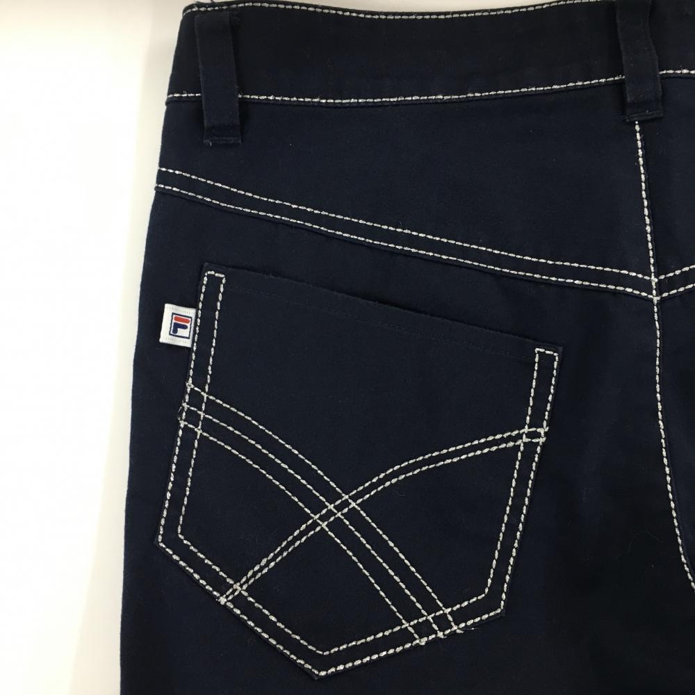 フィラゴルフ 半端丈パンツ ネイビー ラメ糸ステッチ 裾シャーリング レディース 64 ゴルフウェア FILA GOLF