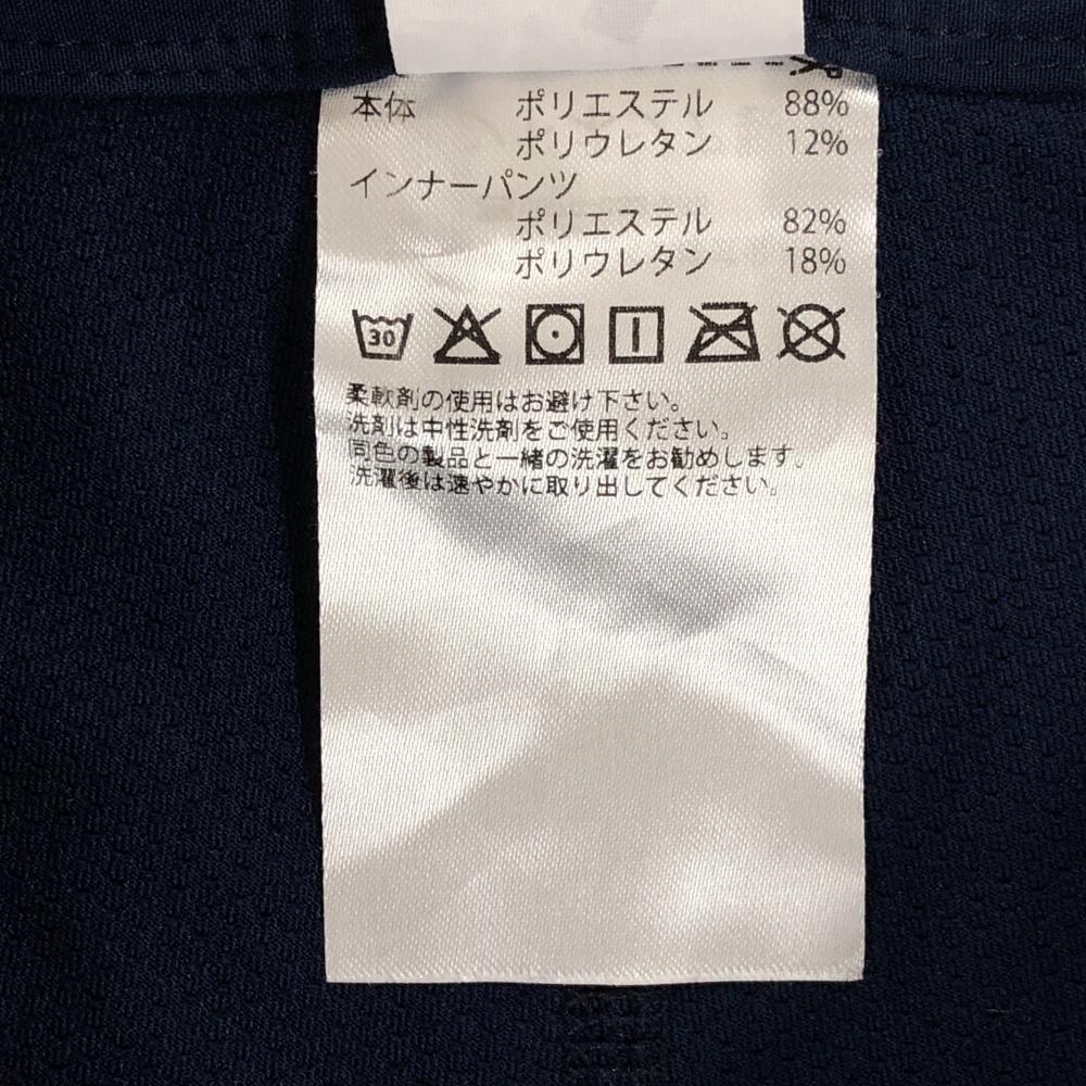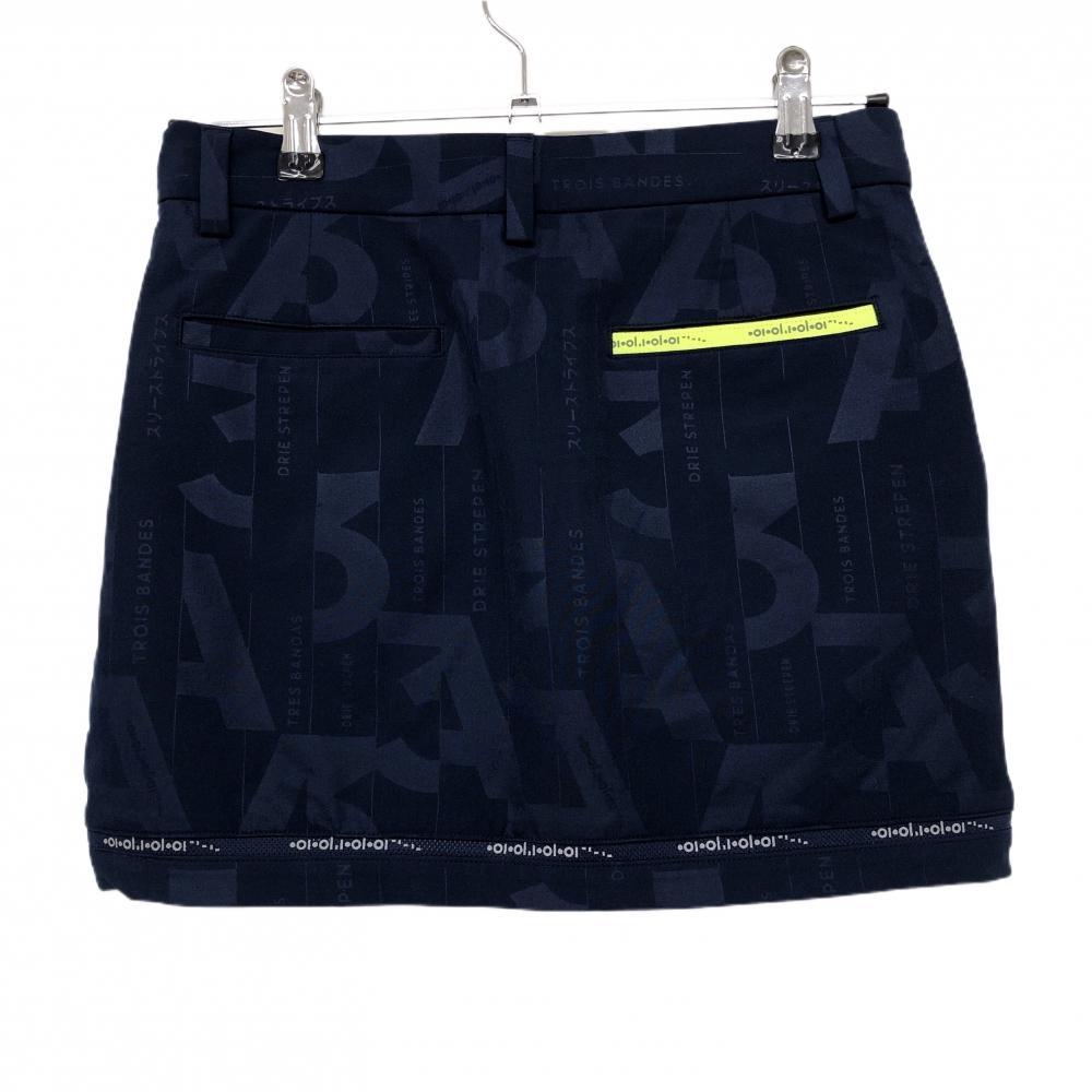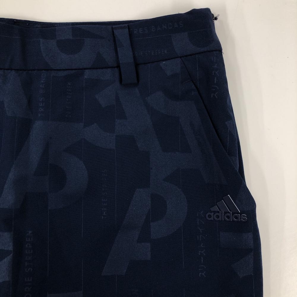 【美品】アディダス スカート ネイビー×蛍光イエロー 総柄地模様 英字 内側インナーパンツ レディース S ゴルフウェア adidas