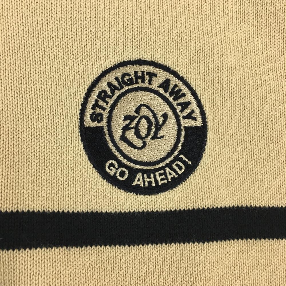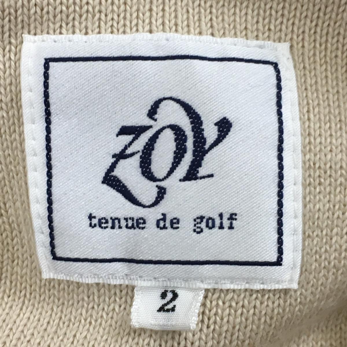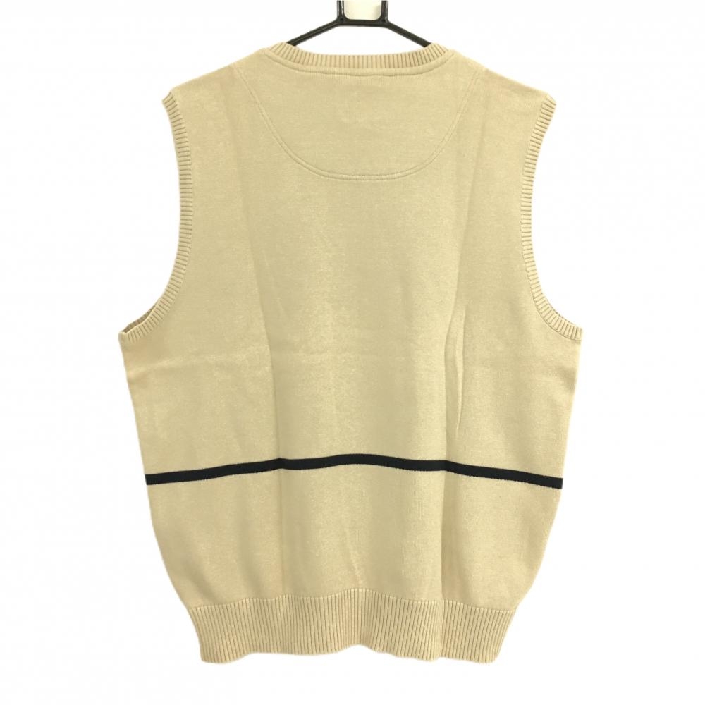【美品】ゾーイ ニットベスト ベージュ×ネイビー Vネック 綿100% ロゴ刺しゅう メンズ 2(M) ゴルフウェア ZOY