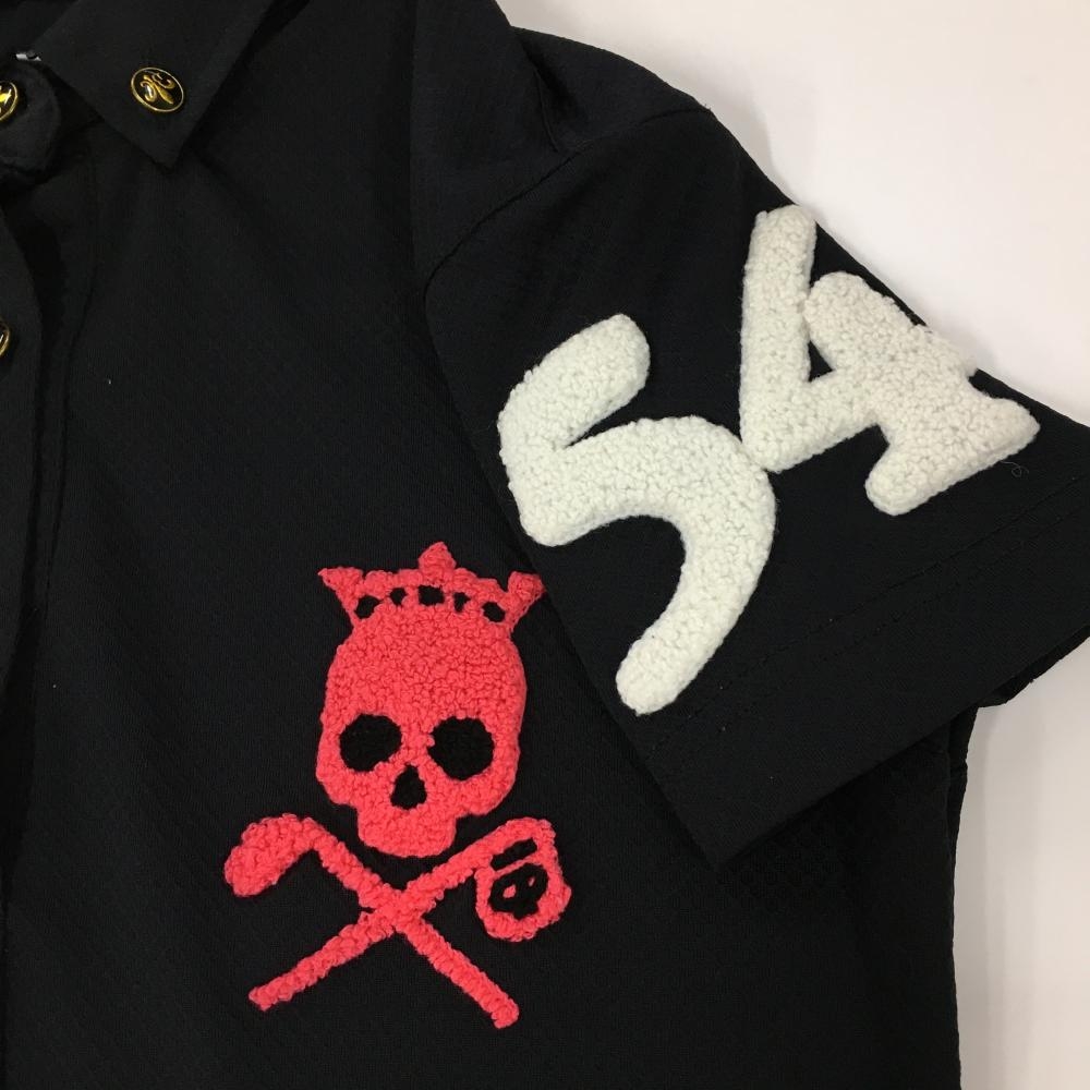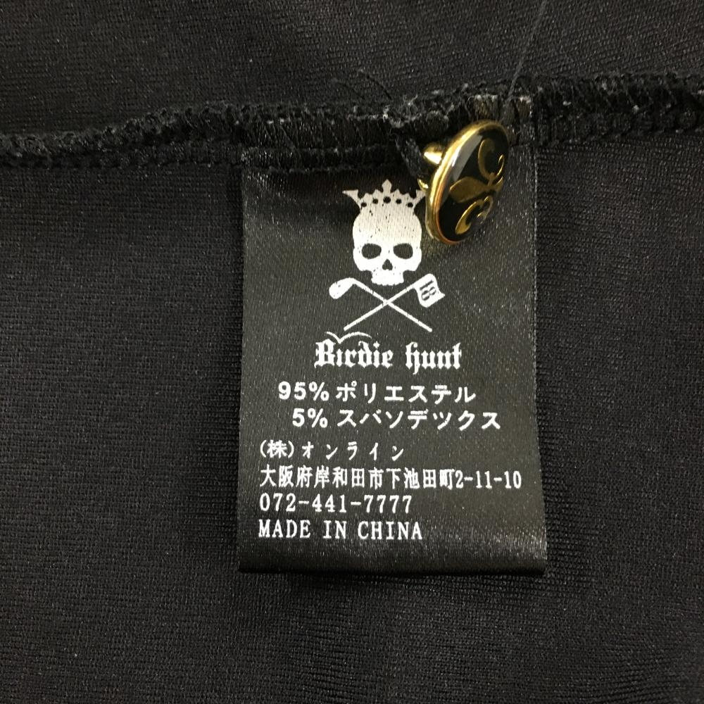 【超美品】バーディハント 半袖ポロシャツ 黒 地模様 スカル ボタンダウン レディース S ゴルフウェア Birdie hunt