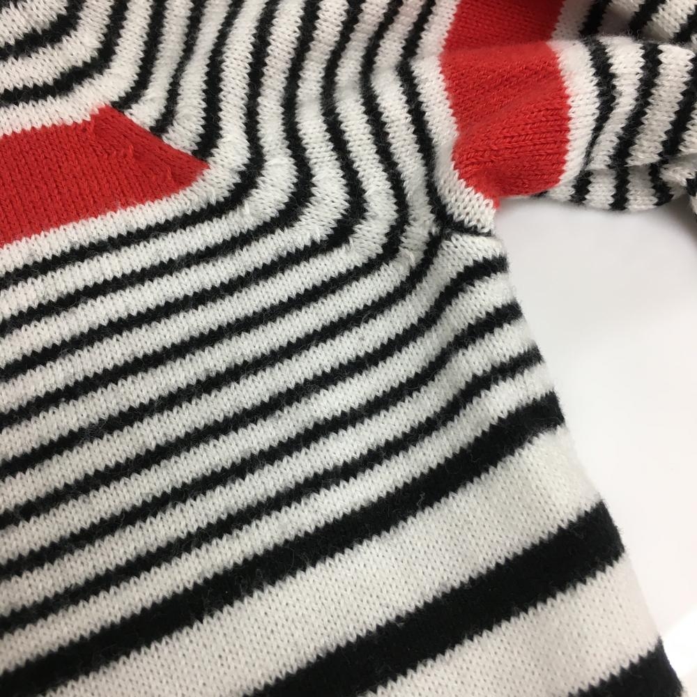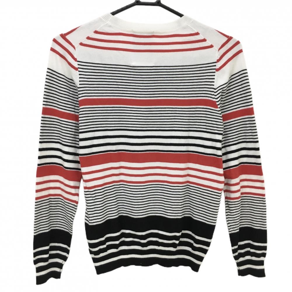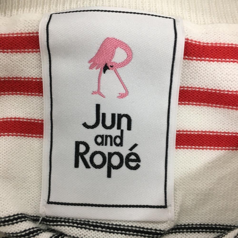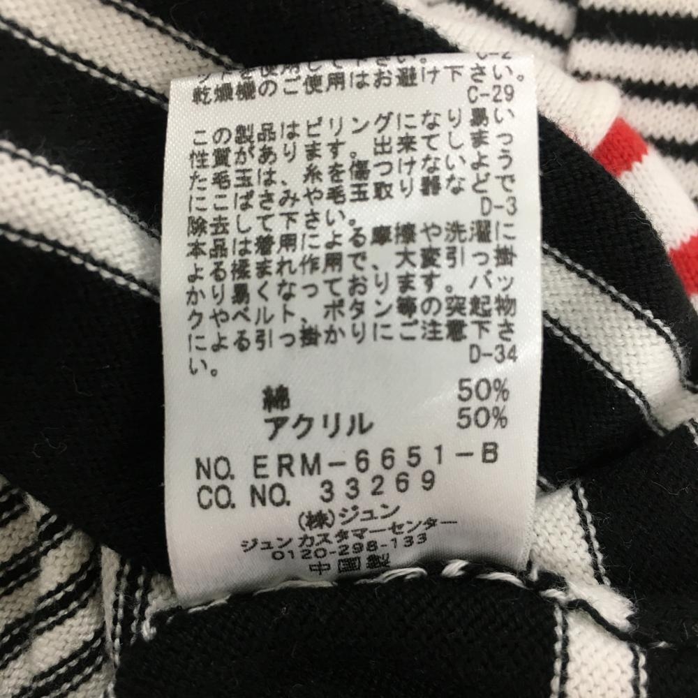 【美品】ジュンアンドロペ セーター 白×黒 ボーダー 胸元ワッペン ニット レディース M ゴルフウェア JUN&ROPE