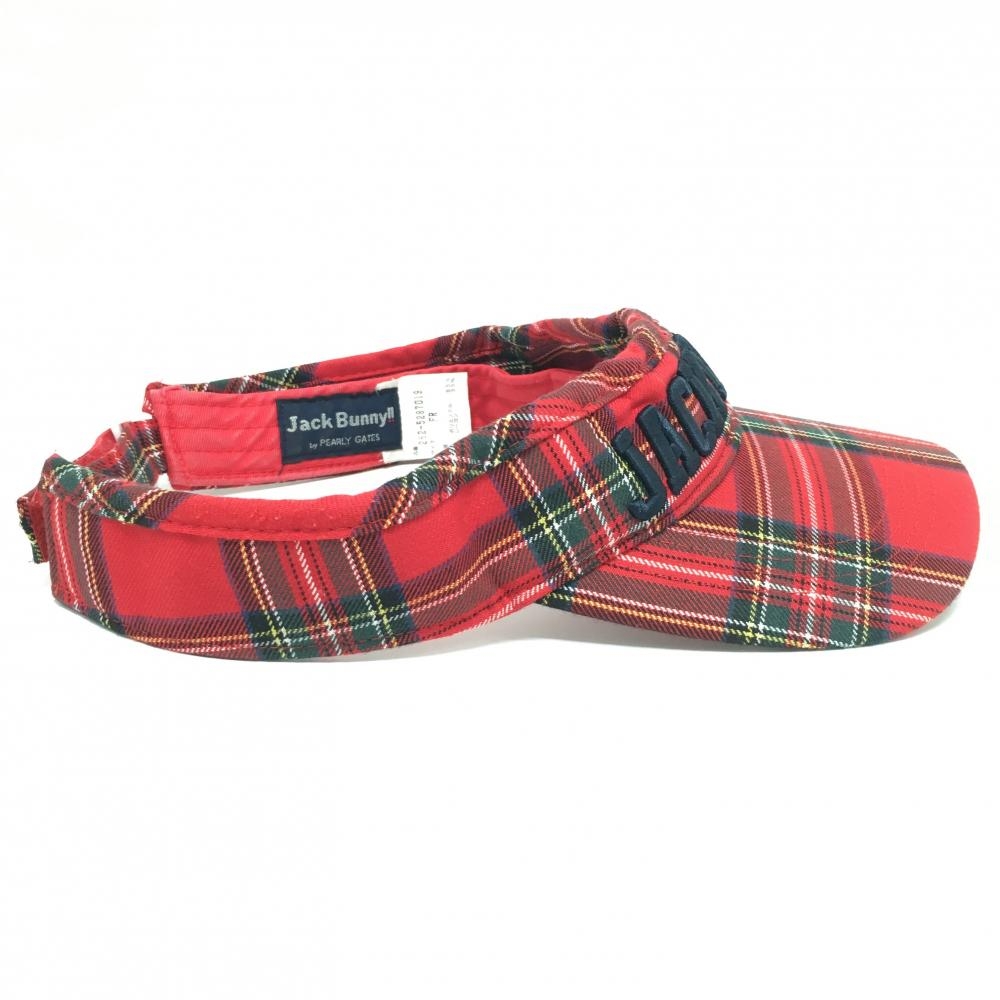 ジャックバニー サンバイザー レッド×グリーン チェック 立体ロゴ FR ゴルフウェア Jack Bunny