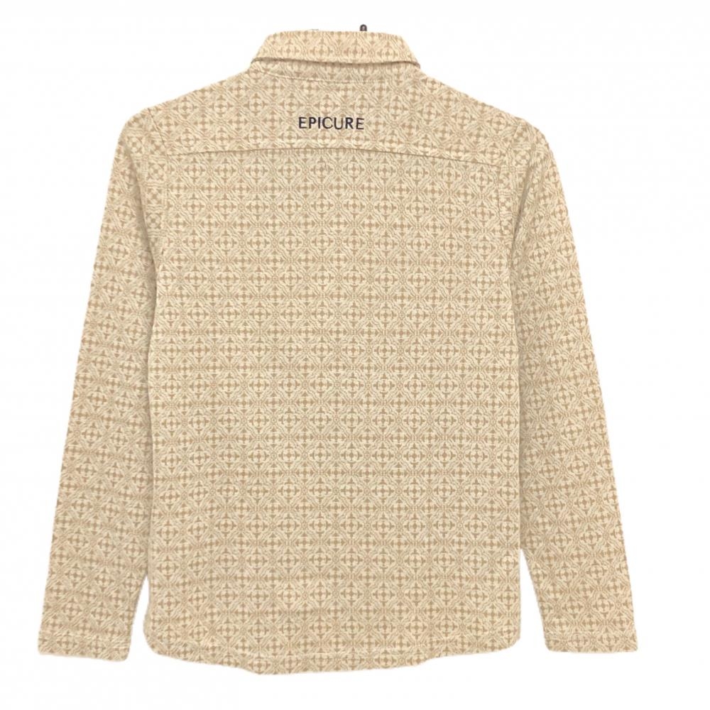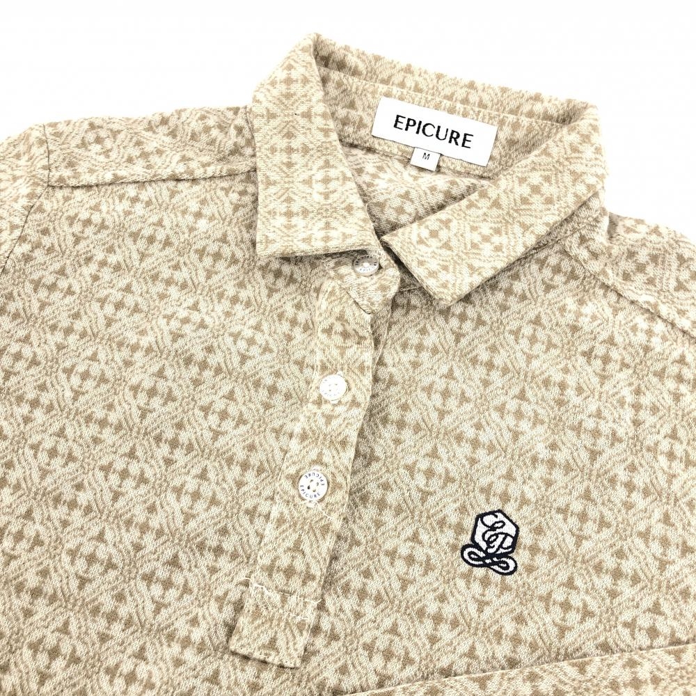 【美品】エピキュール 長袖ポロシャツ ベージュ×ライトブラウン 総柄 微起毛 レディース M ゴルフウェア EPICURE