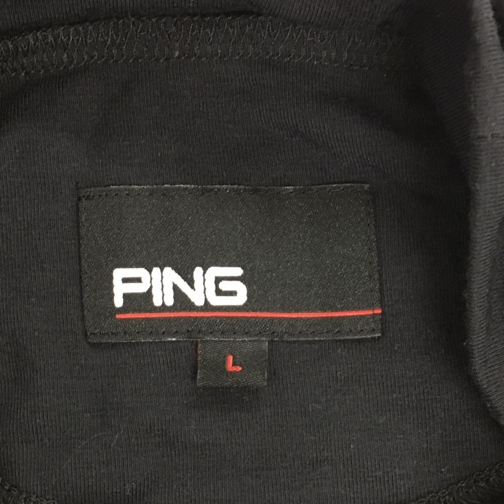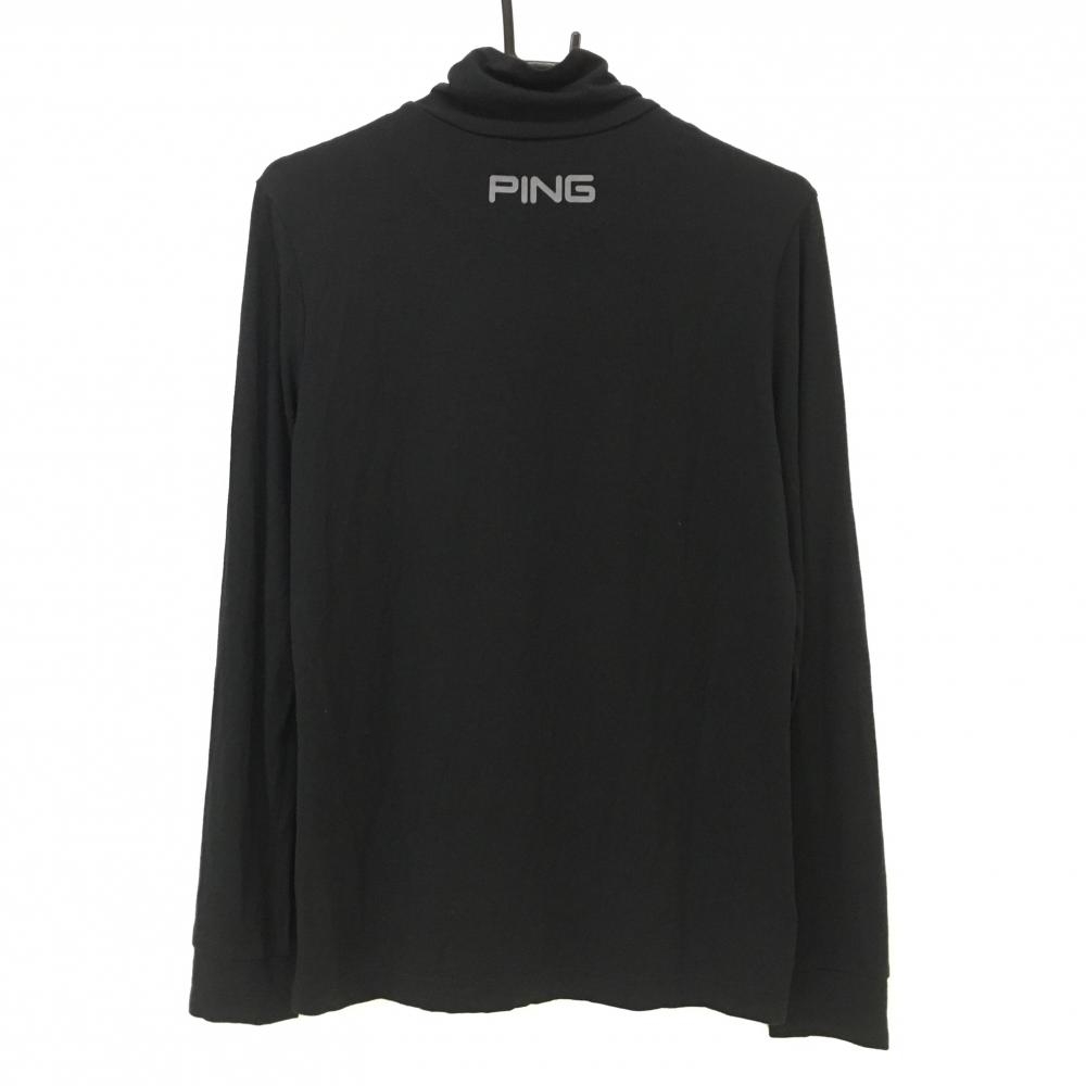 【美品】ピン 長袖ハイネックシャツ 黒×グレー フロントロゴ ストレッチ レディース L ゴルフウェア PING