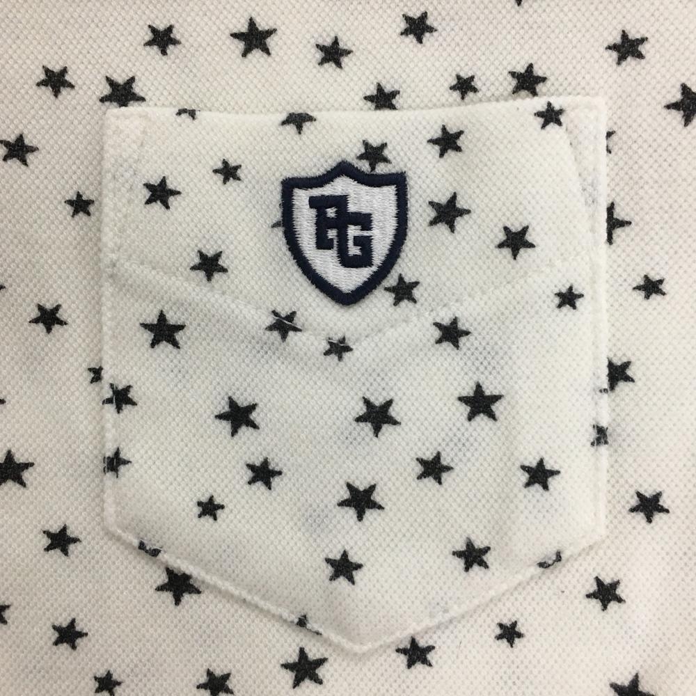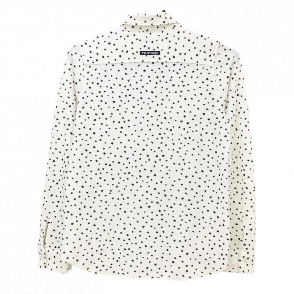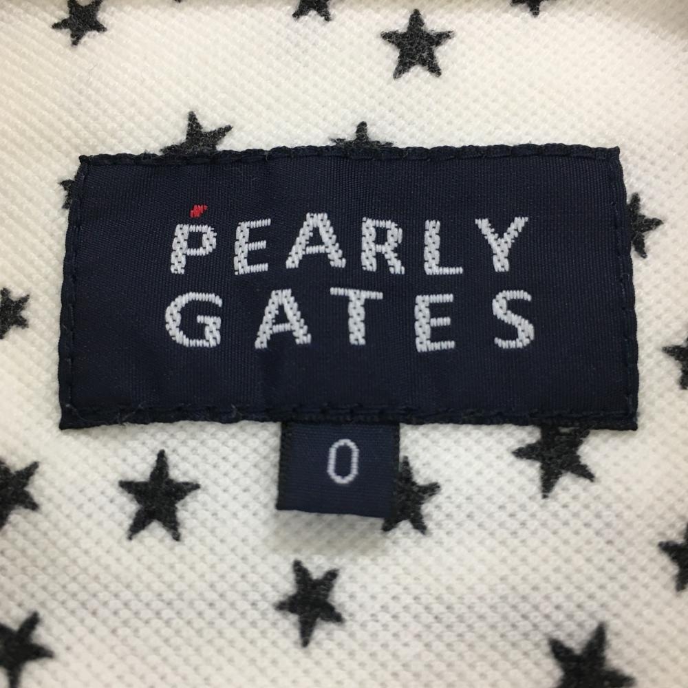 【美品】パーリーゲイツ 長袖ポロシャツ 白×黒 星柄 胸ポケット レディース 0(S) ゴルフウェア PEARLY GATES