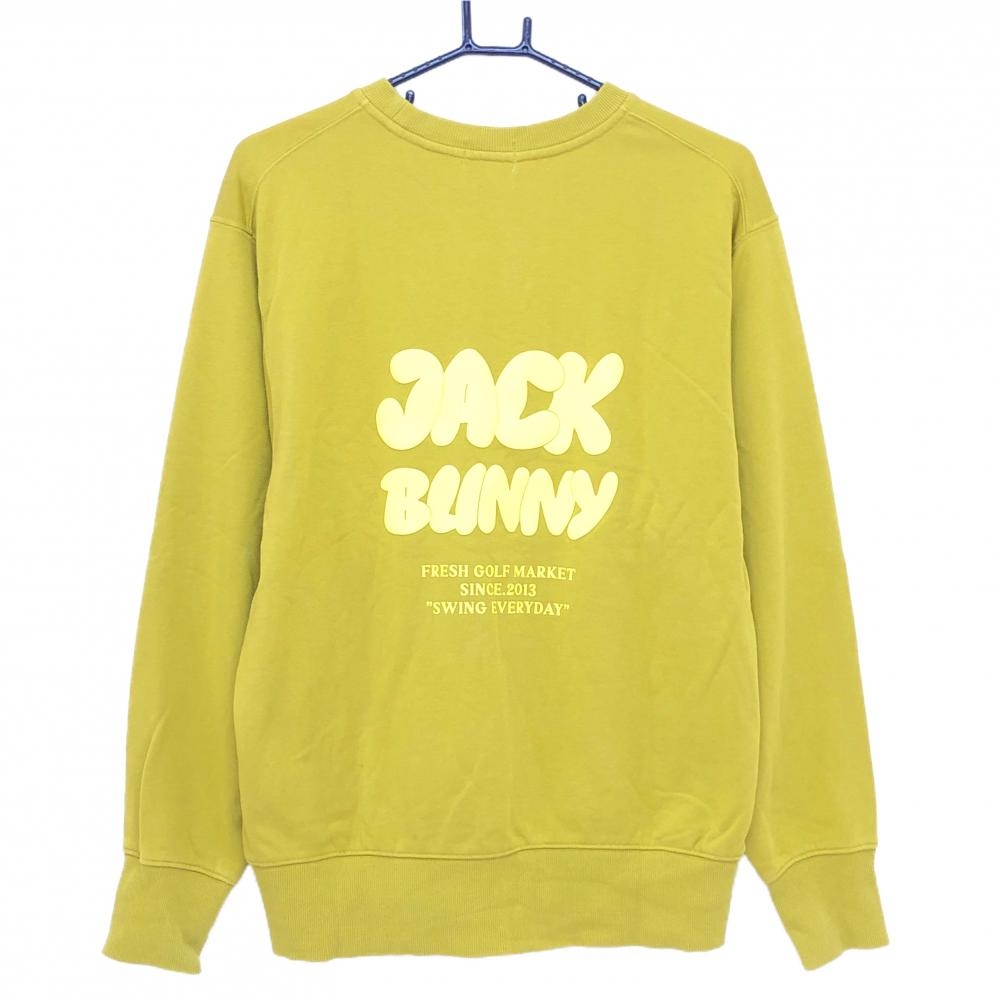 【超美品】ジャックバニー トレーナー マスタードイエロー 背面ビッグロゴ 裏毛素材 レディース 2(L) ゴルフウェア Jack Bunny