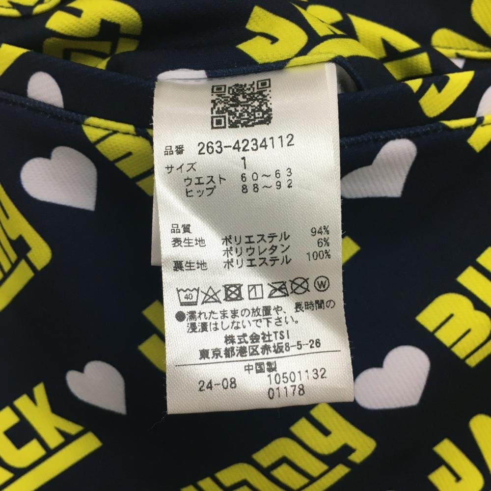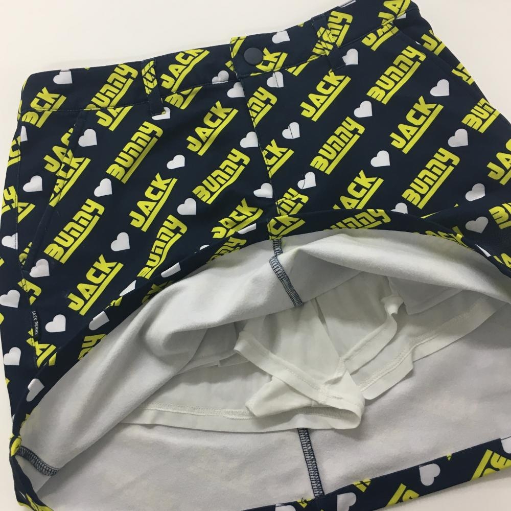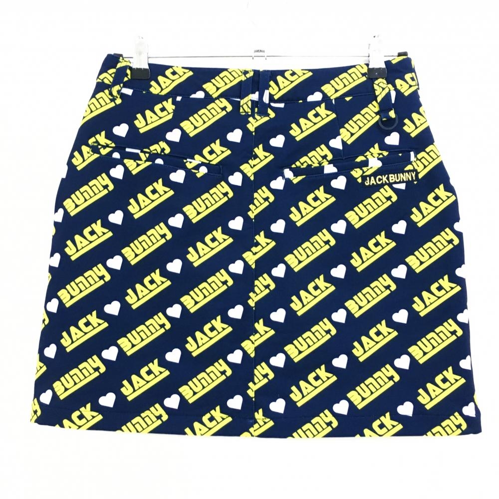 ジャックバニー スカート ネイビー×イエロー 斜めロゴ総柄 裏起毛 レディース 1(M) ゴルフウェア 2024年モデル Jack Bunny