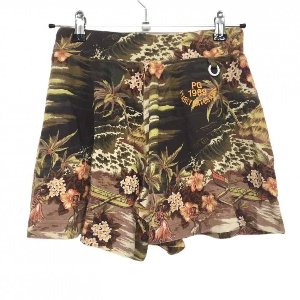 【美品】パーリーゲイツ ショートパンツ ブラウン系 ハワイアン風景柄 ウエストゴム レディース 0(S) ゴルフウェア PEARLY GATES