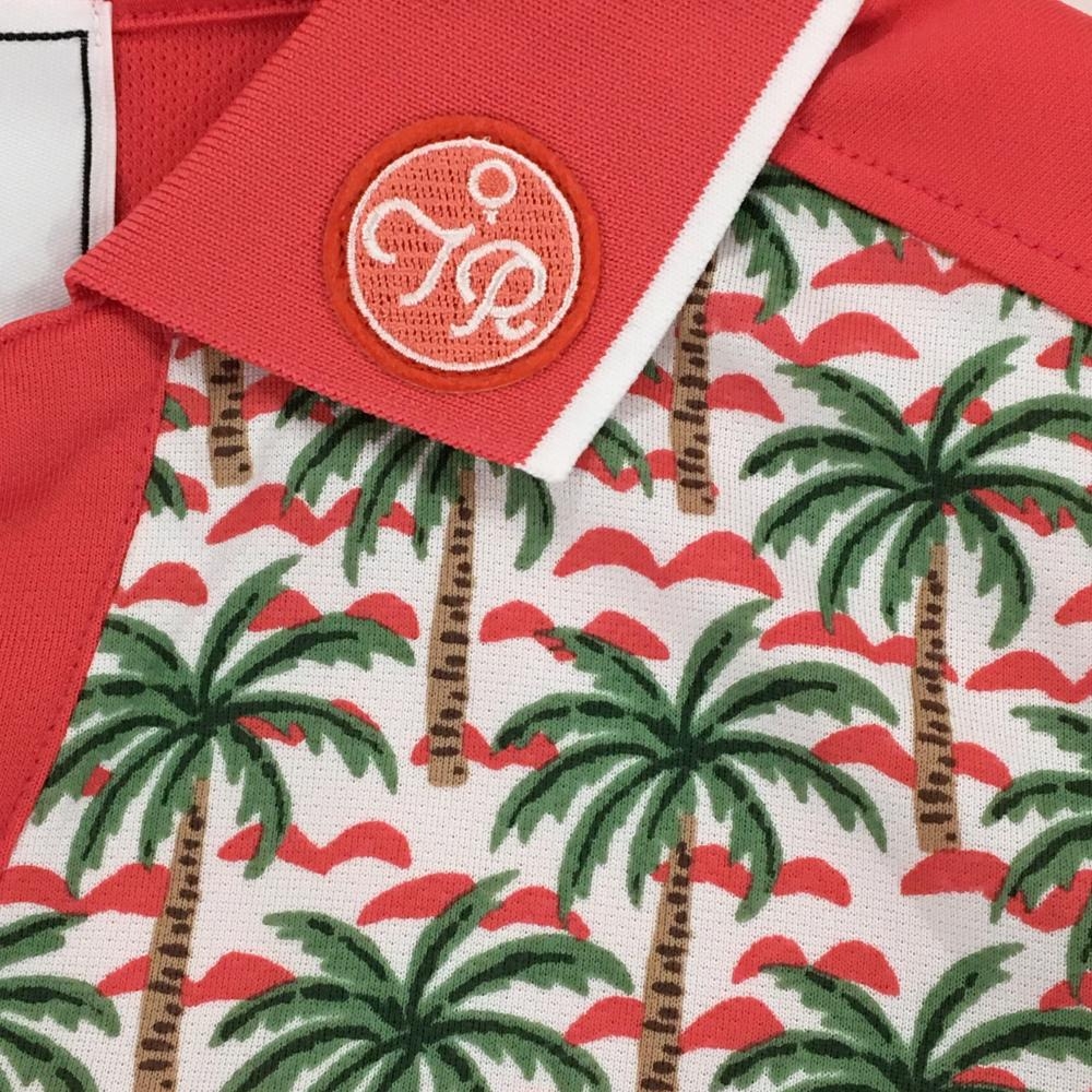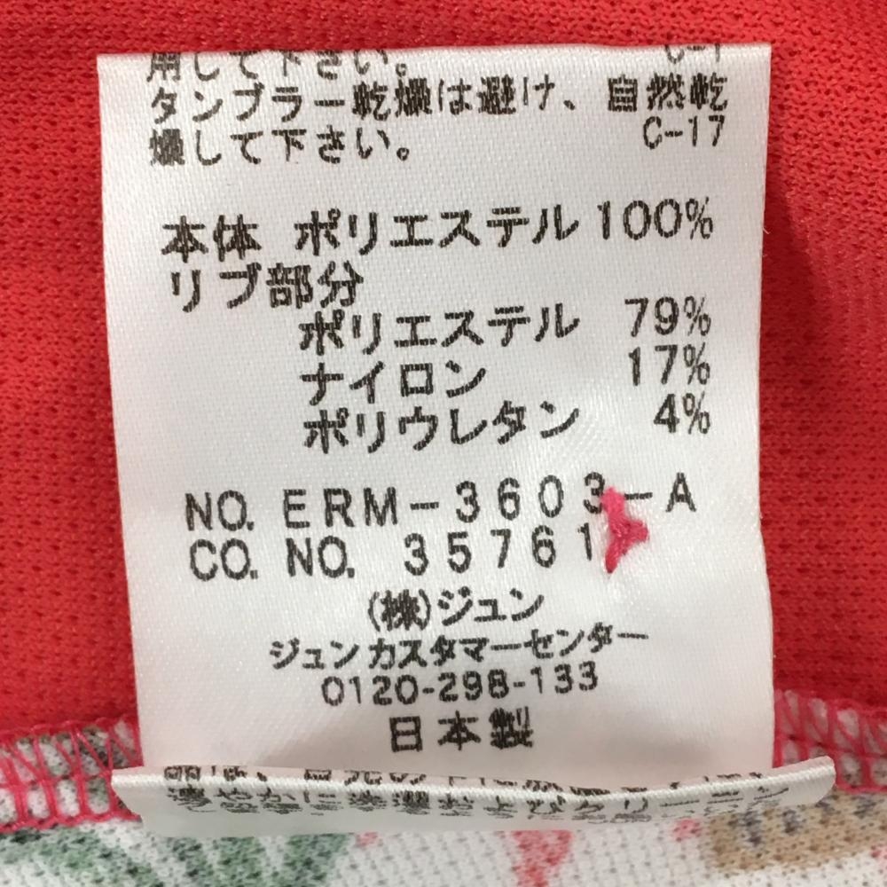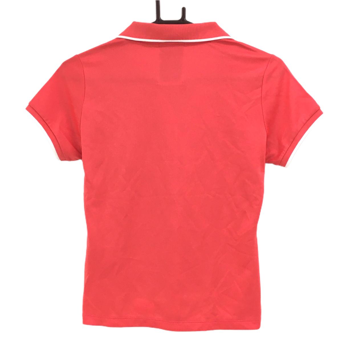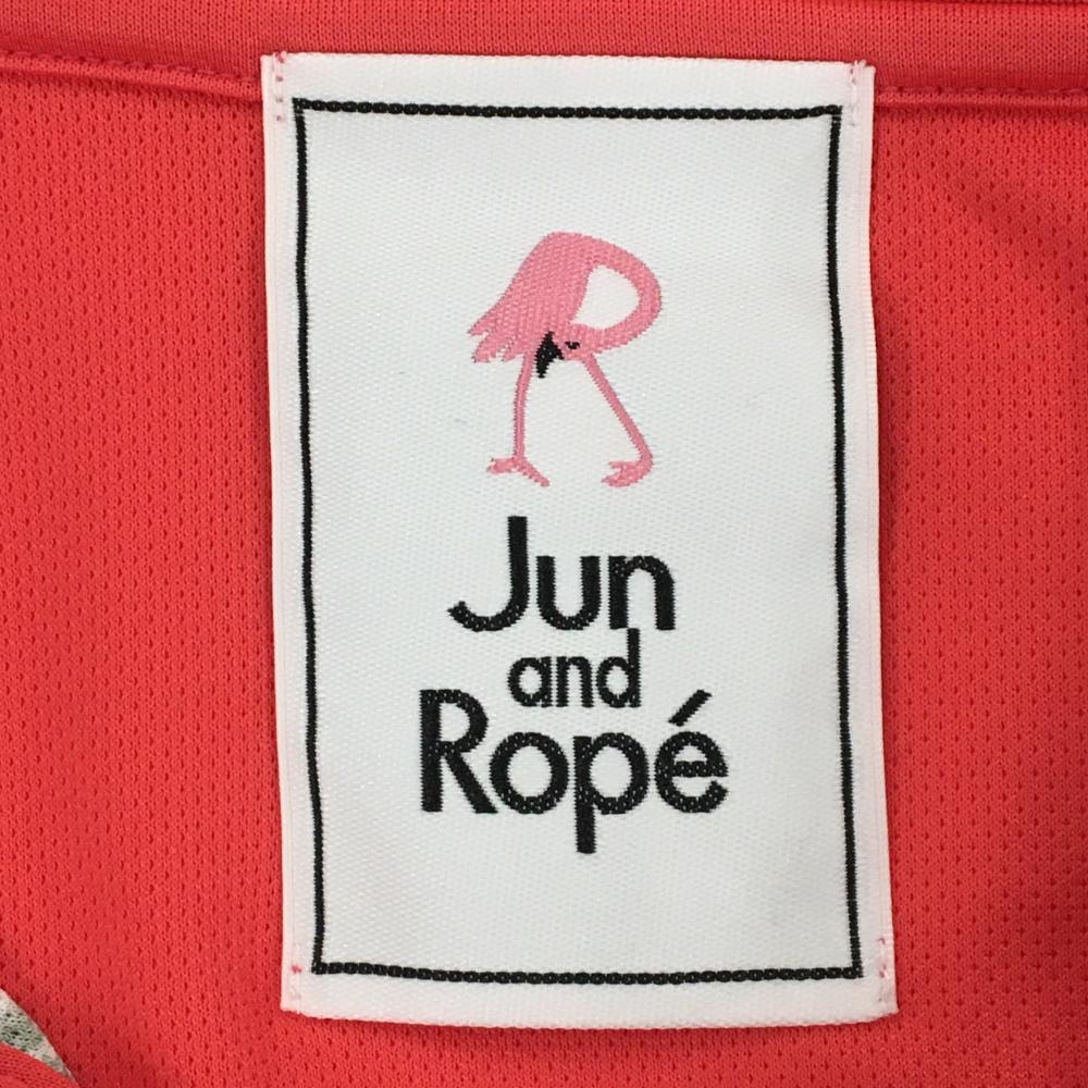 【超美品】ジュンアンドロペ 半袖ポロシャツ レッド系×白 前面ヤシの木総柄 ロゴ レディース S ゴルフウェア JUN&ROPE