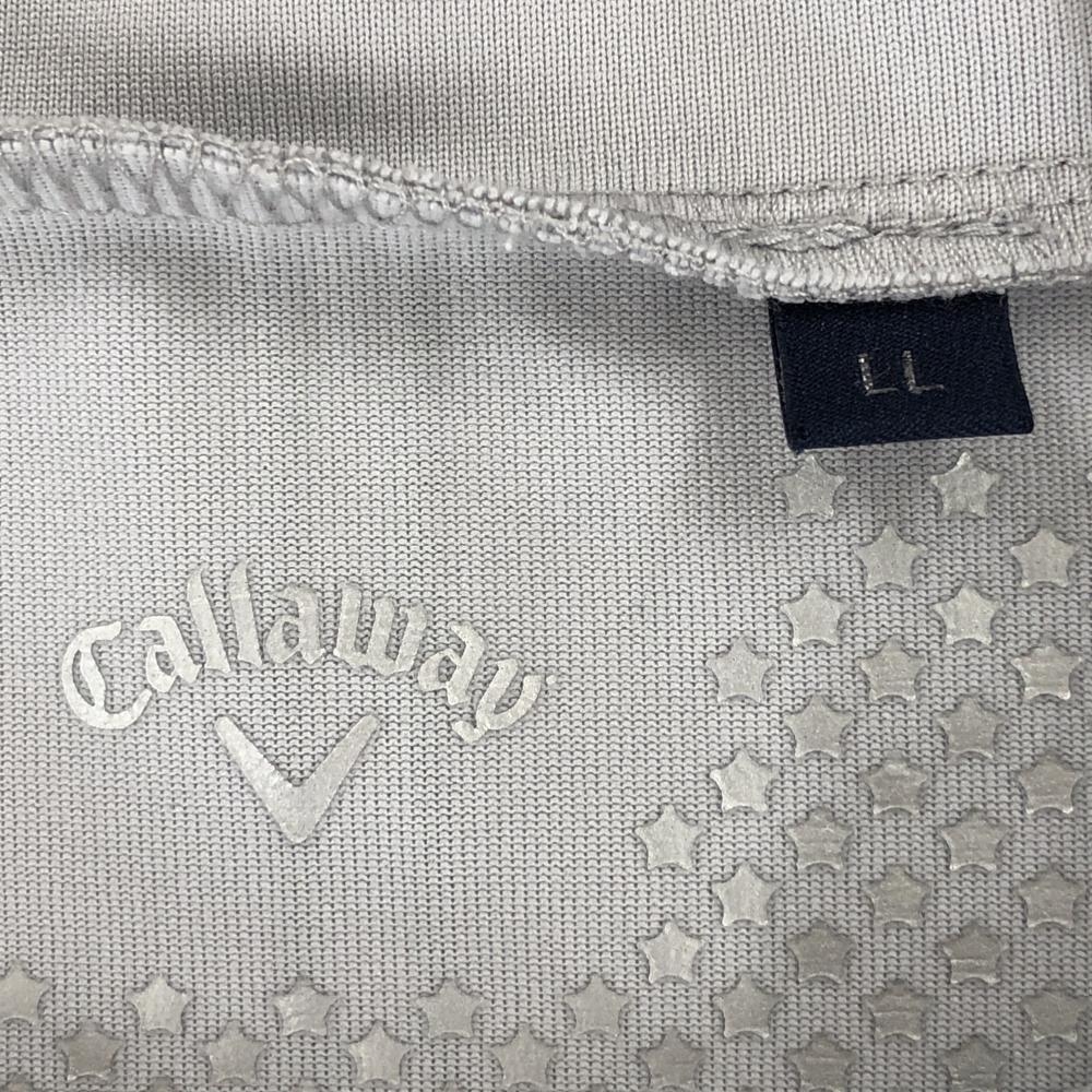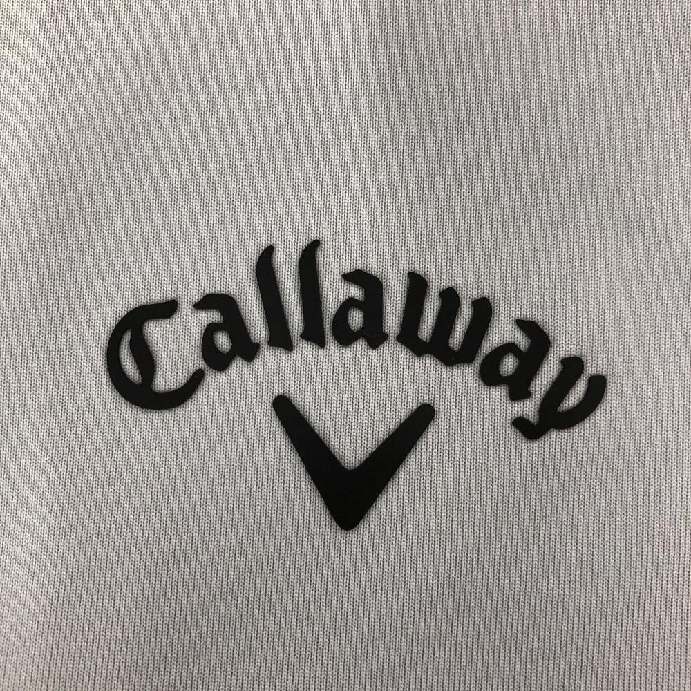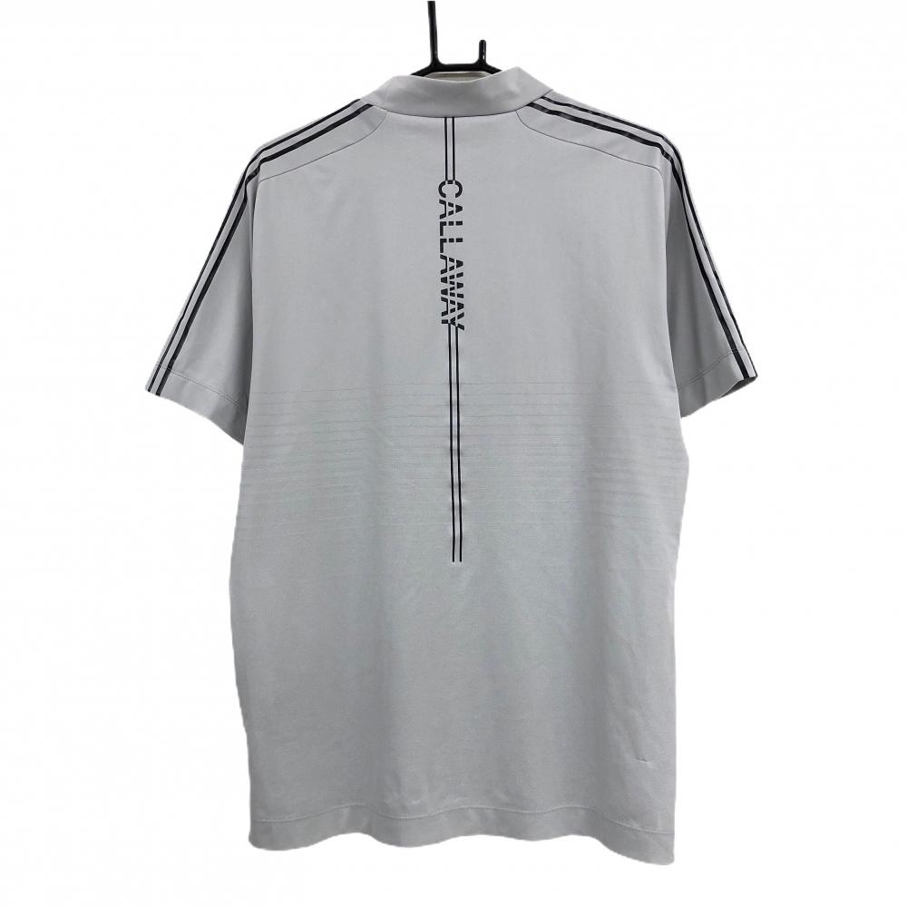 【超美品】キャロウェイ 半袖ハイネックシャツ グレー×黒 胸元ボーダー地模様 袖ライン メンズ LL ゴルフウェア 2023年モデル Callaway