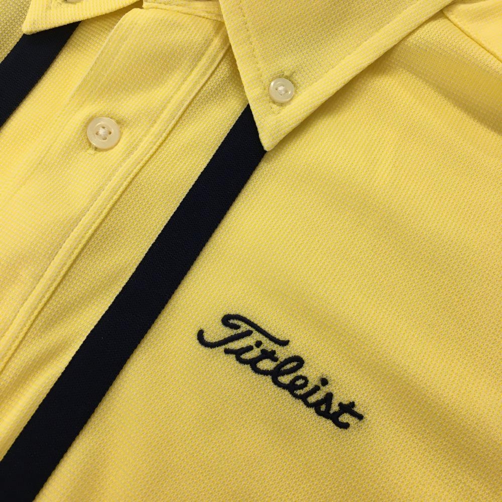タイトリスト 半袖ポロシャツ イエロー×ネイビー ボタンダウン ネイビーライン メンズ M ゴルフウェア TITLEIST