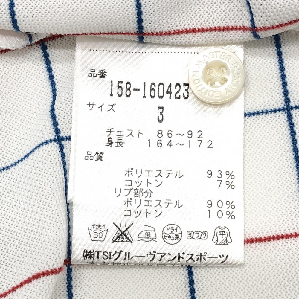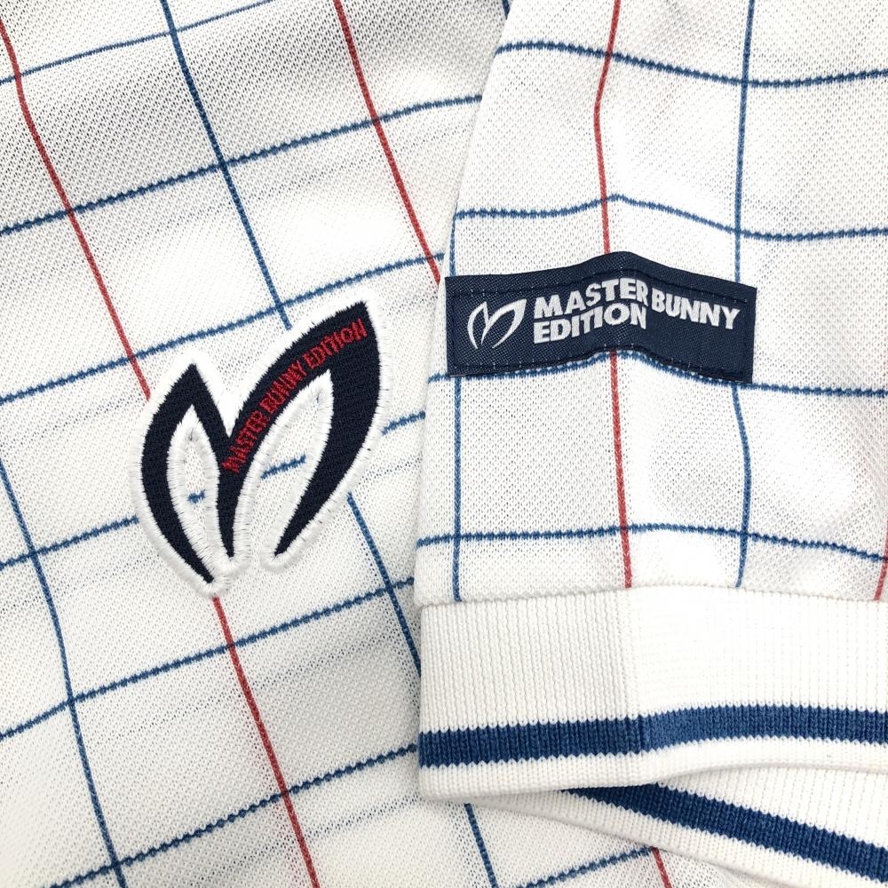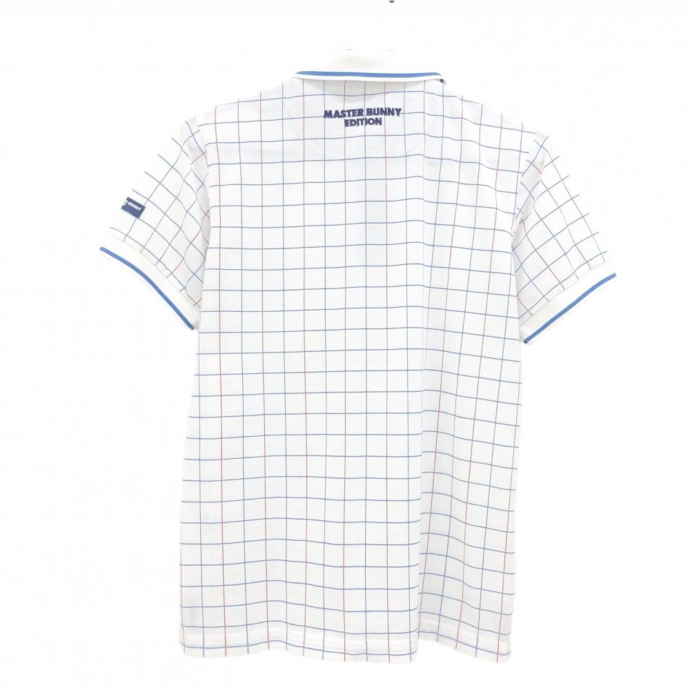 【美品】マスターバニー 半袖ポロシャツ 白×ブルー×レッド チェック 胸元ロゴ刺しゅう メンズ 3(S) ゴルフウェア MASTER BUNNY EDITION