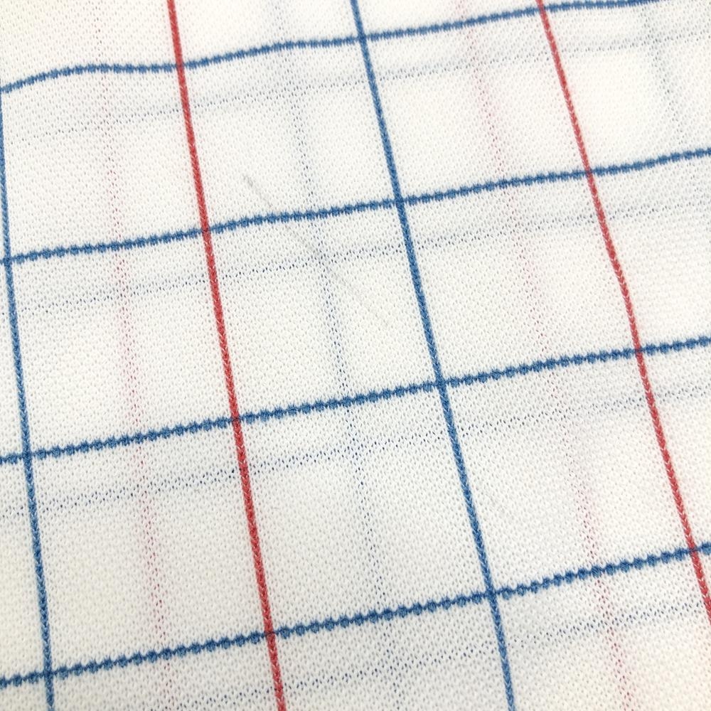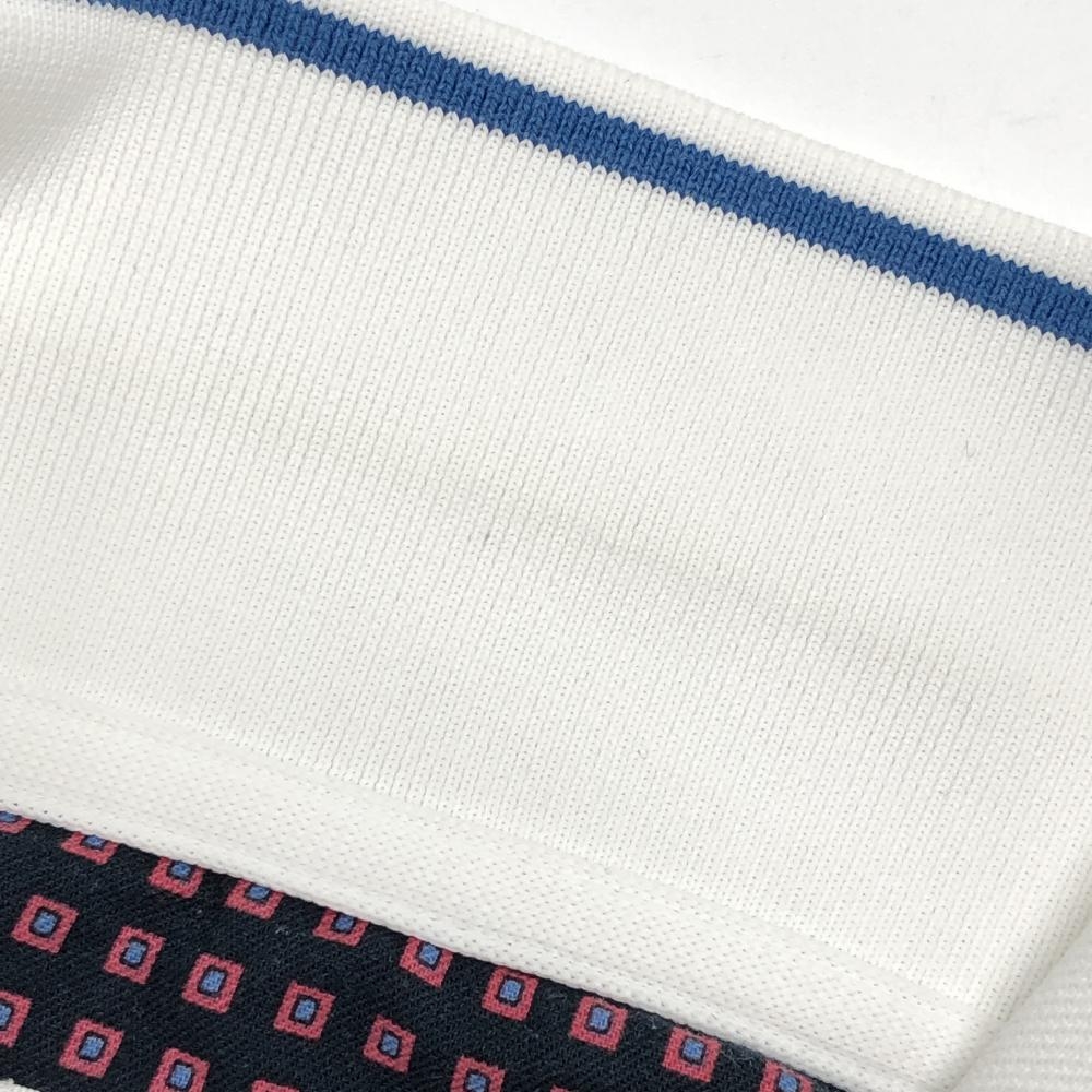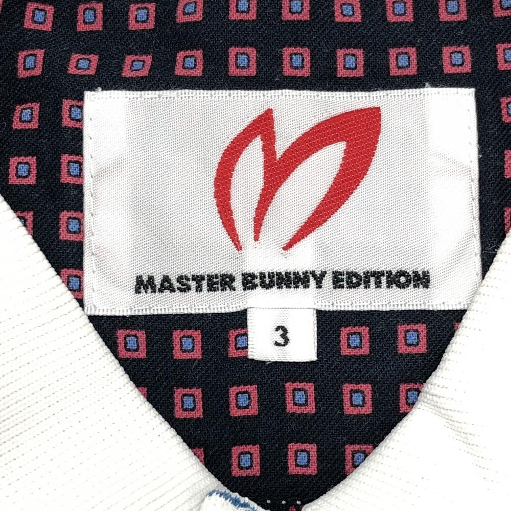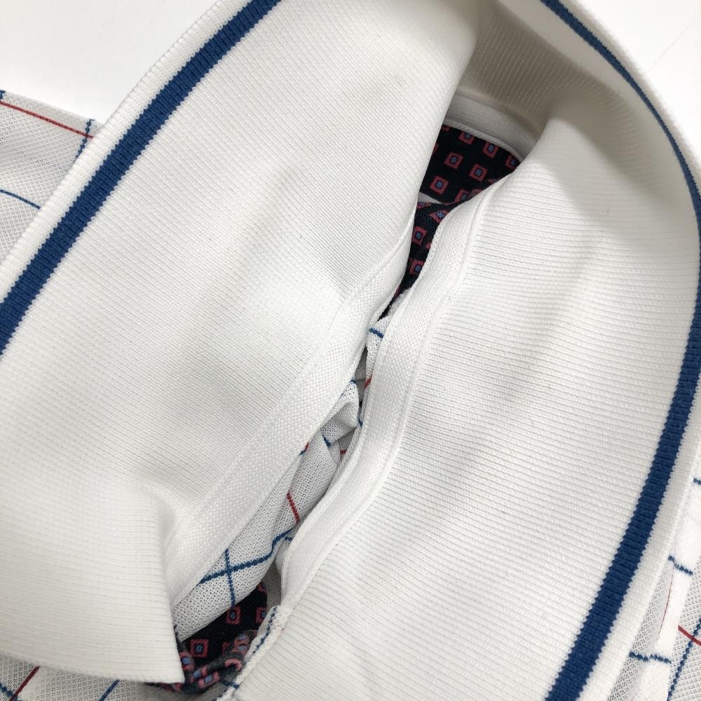 【美品】マスターバニー 半袖ポロシャツ 白×ブルー×レッド チェック 胸元ロゴ刺しゅう メンズ 3(S) ゴルフウェア MASTER BUNNY EDITION