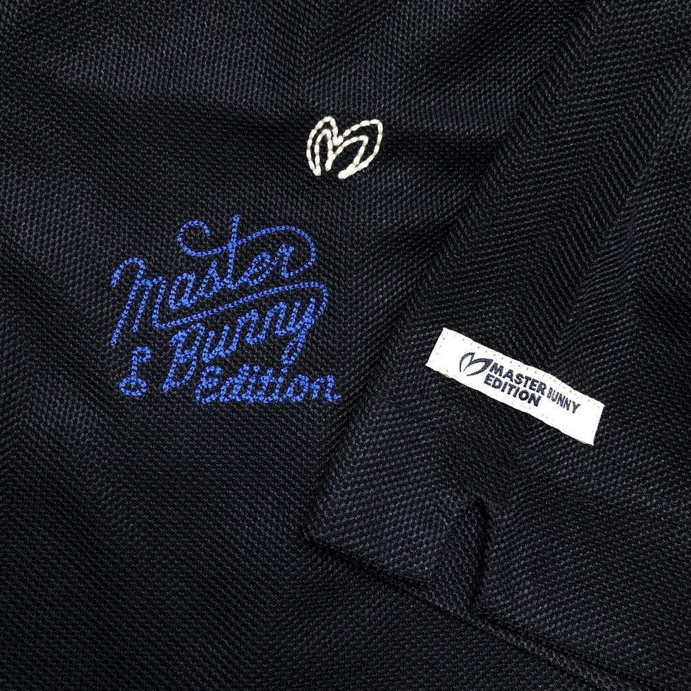 【超美品】マスターバニー 半袖ポロシャツ ダークネイビー×ブルー 胸元ロゴ メンズ 3(S) ゴルフウェア MASTER BUNNY EDITION