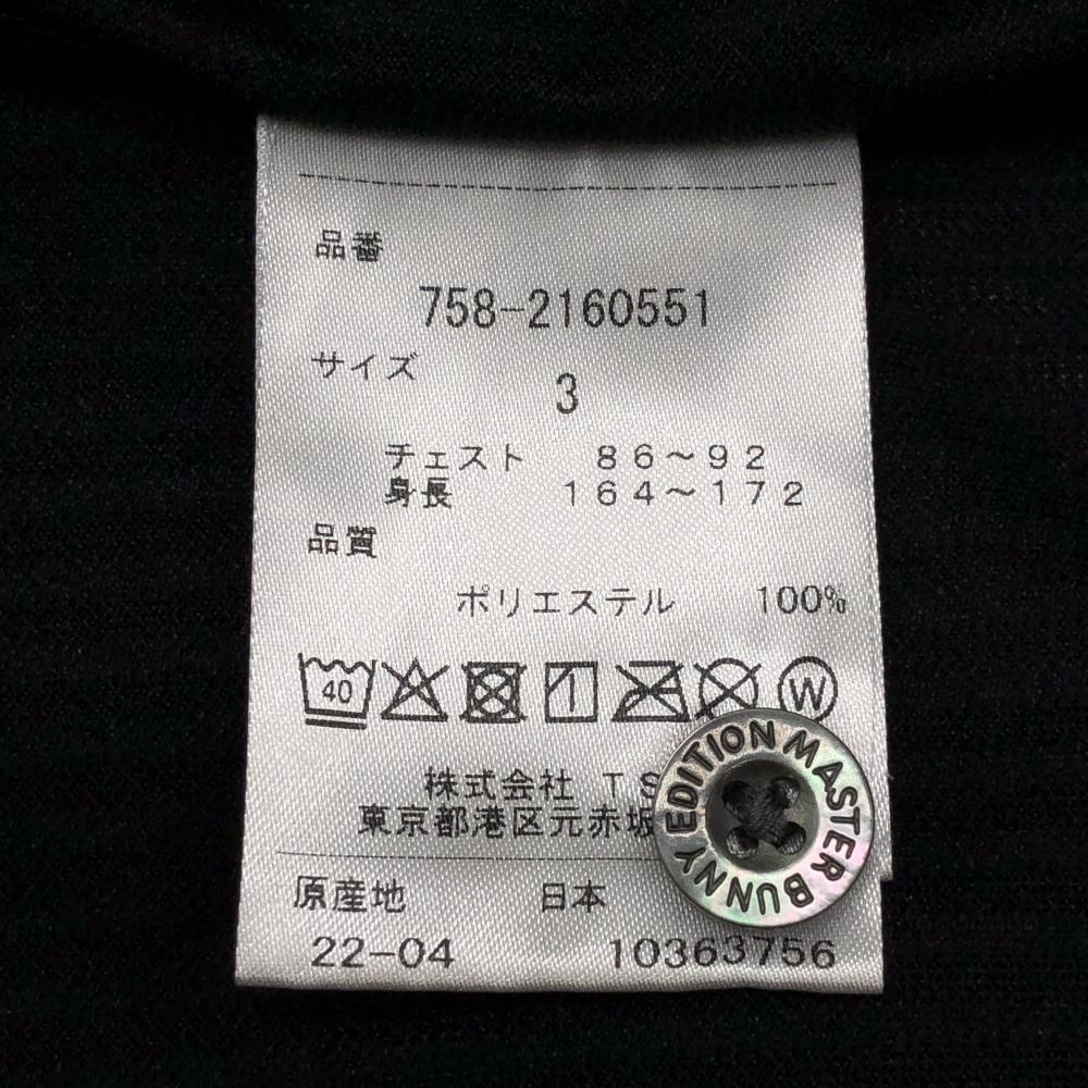 【超美品】マスターバニー 半袖ポロシャツ 黒×ダークネイビー ストライプ地模様 胸ロゴ メンズ 3(S) ゴルフウェア MASTER BUNNY EDITION
