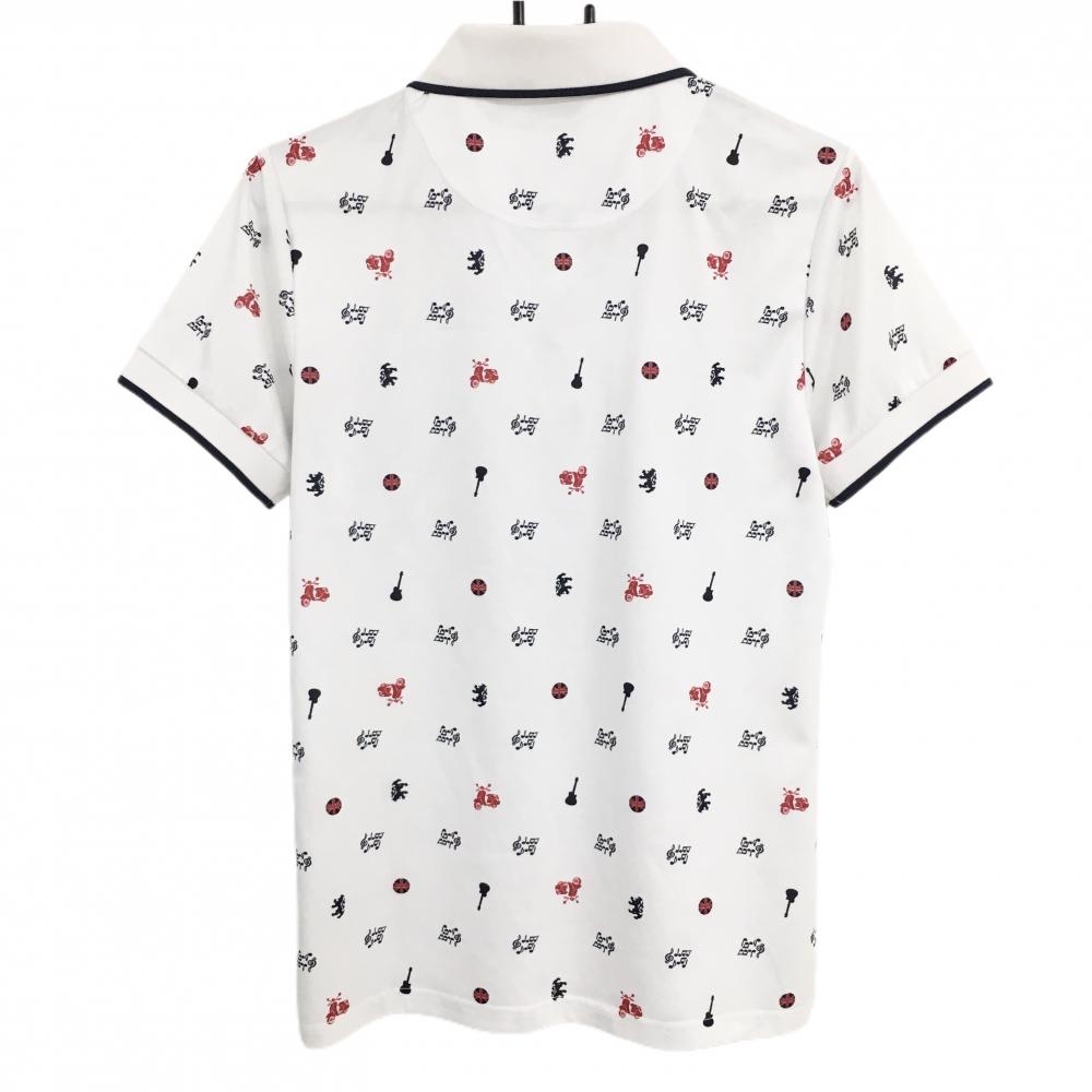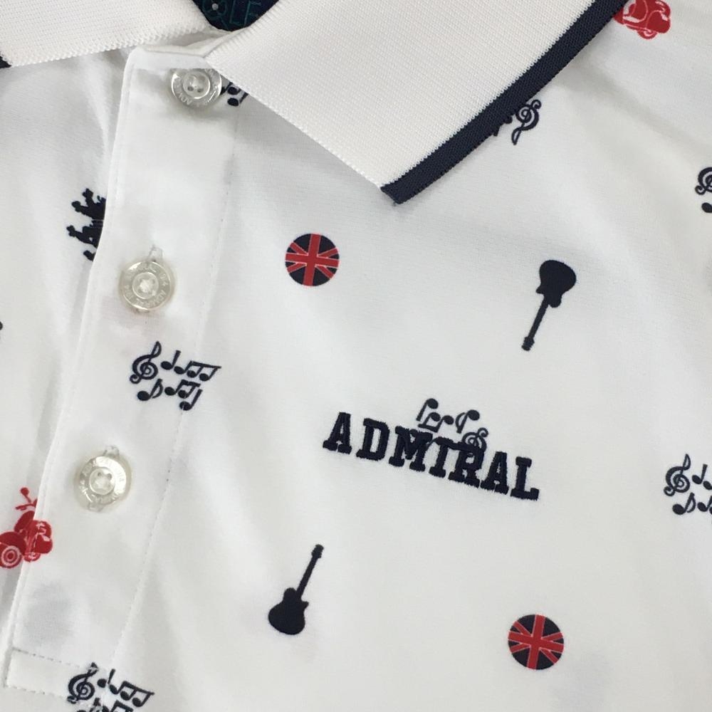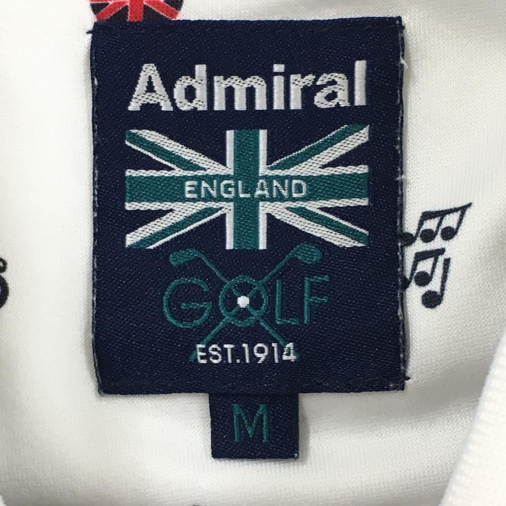 【美品】アドミラル 半袖ポロシャツ 白×ダークネイビー×レッド 総柄 音符 ユニオンジャック メンズ M ゴルフウェア Admiral