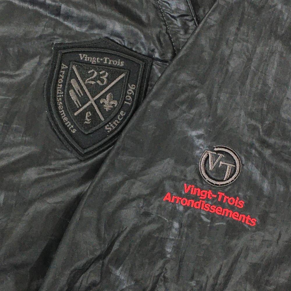 23区スポーツ 2WAYジャケットブルゾン 黒 胸元ロゴワッペン 袖着脱可 薄手 裾ドローコード メンズ M ゴルフウェア 23区