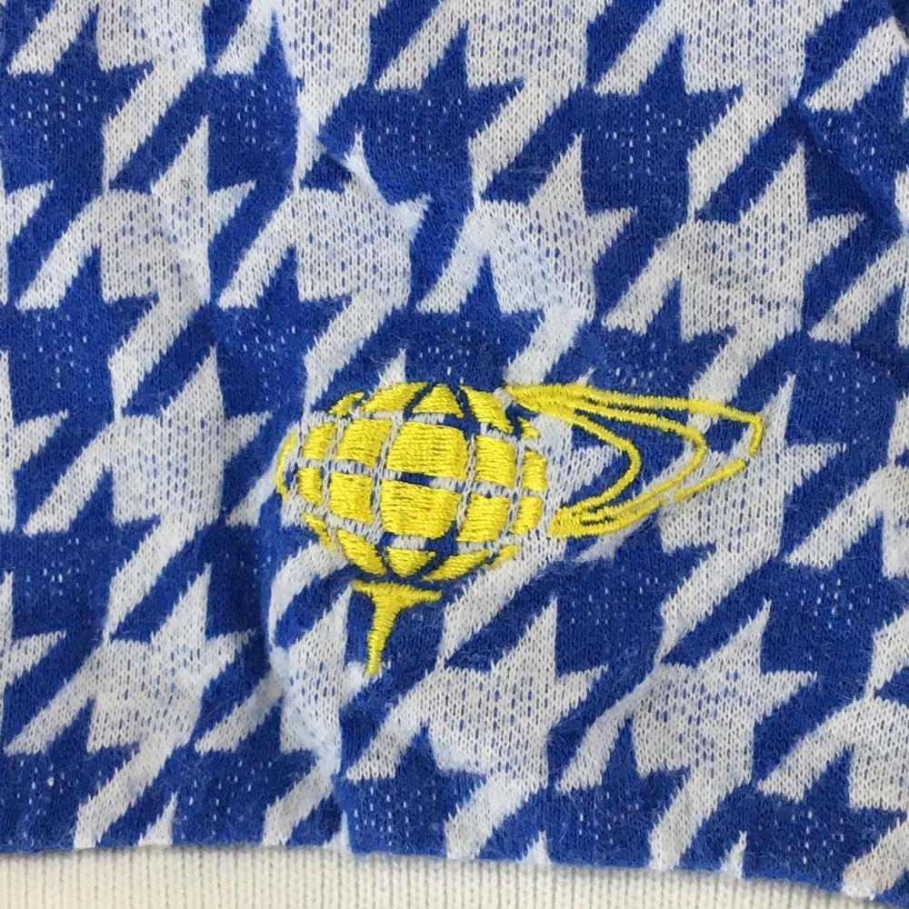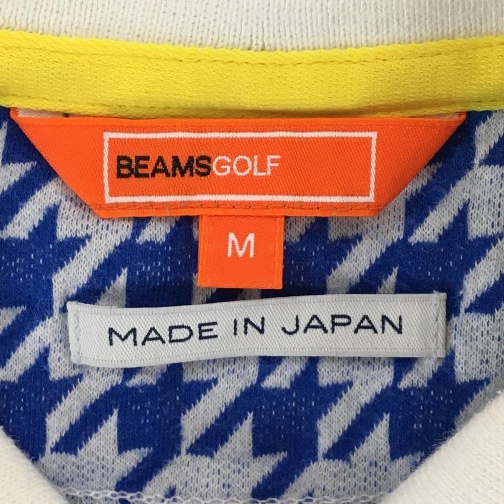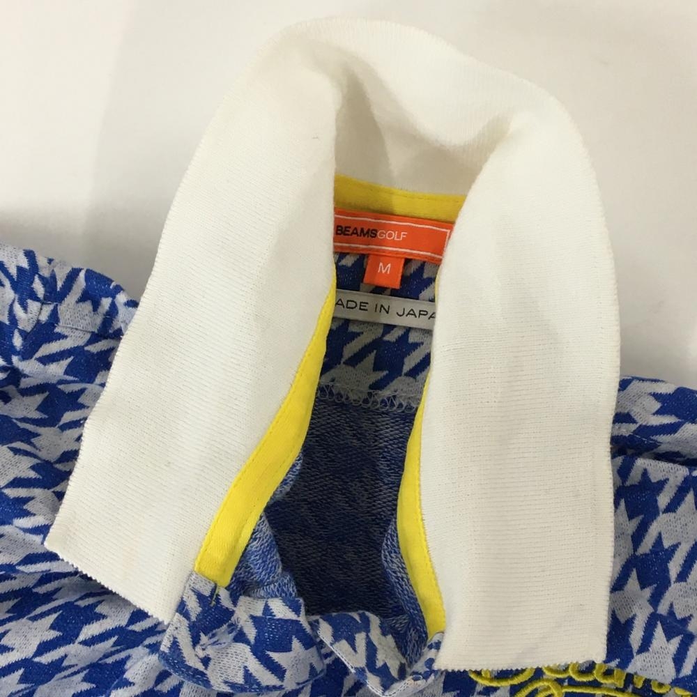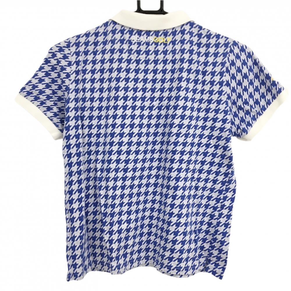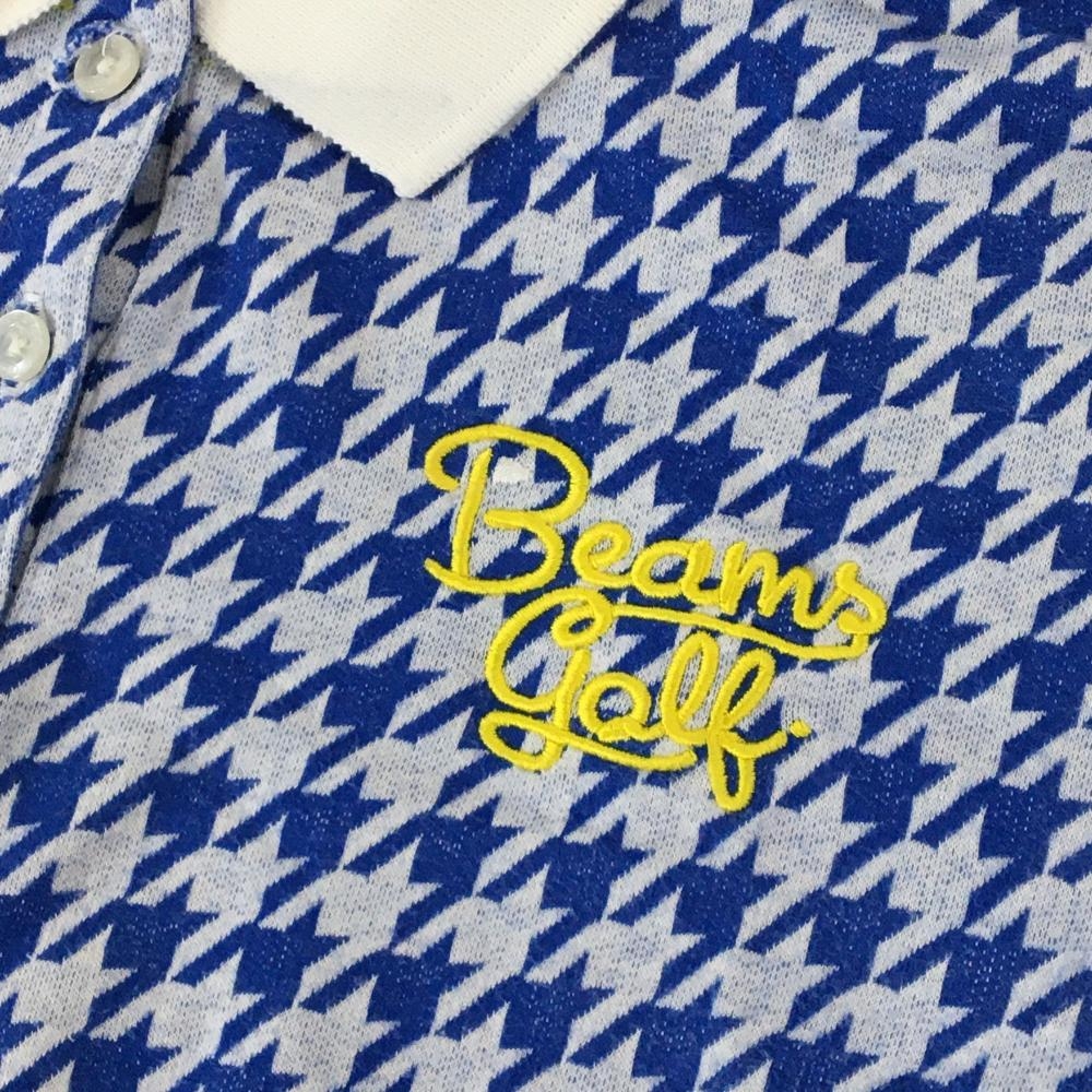ビームスゴルフ 半袖ポロシャツ ブルー×白 千鳥格子 ロゴ刺しゅう レディース M ゴルフウェア BEAMS GOLF