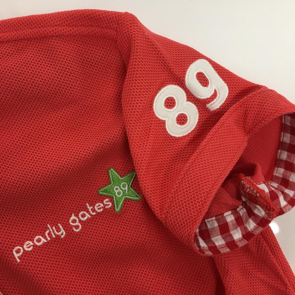 【美品】パーリーゲイツ 半袖ポロシャツ レッドオレンジ ロゴ刺しゅう レディース 0(S) ゴルフウェア PEARLY GATES