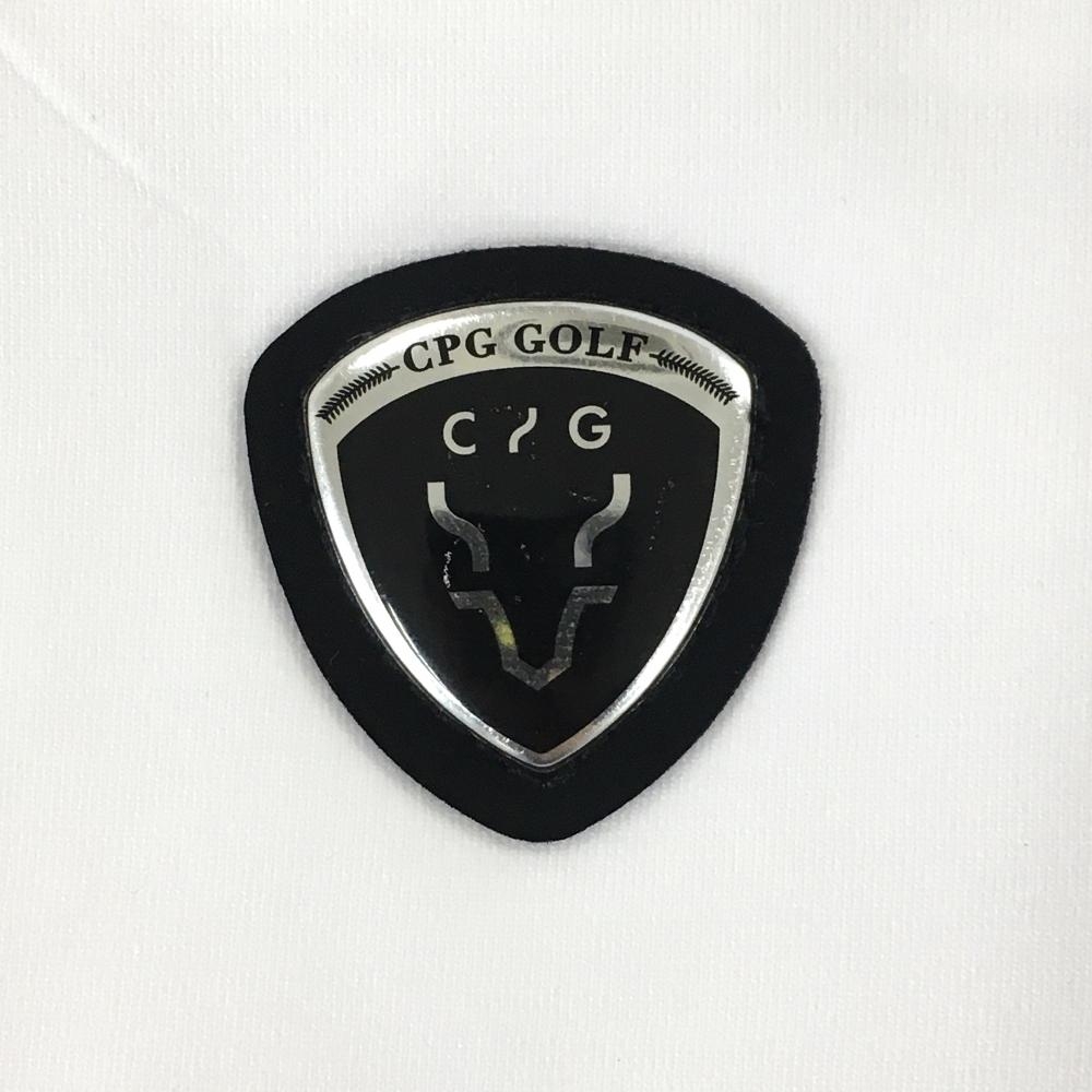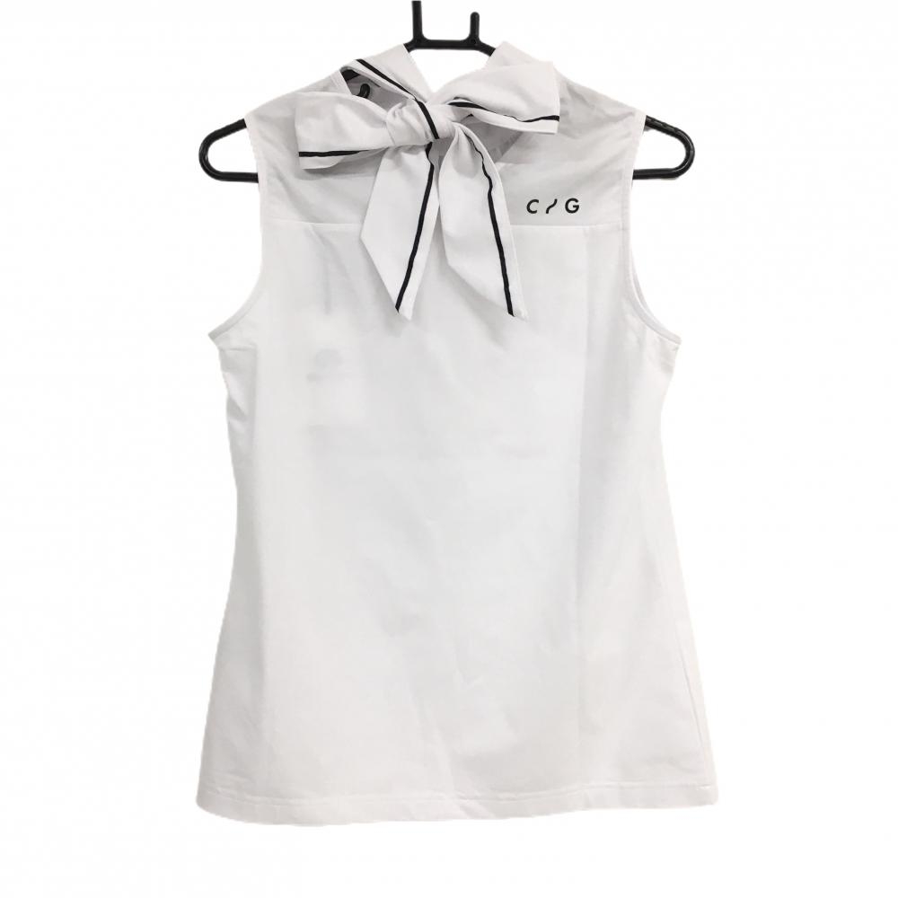 【新品】CPG ノースリーブハイネックシャツ 白×黒 立体ロゴ ネック後ろリボン レディース 2(M) ゴルフウェア 2024年モデル CPG