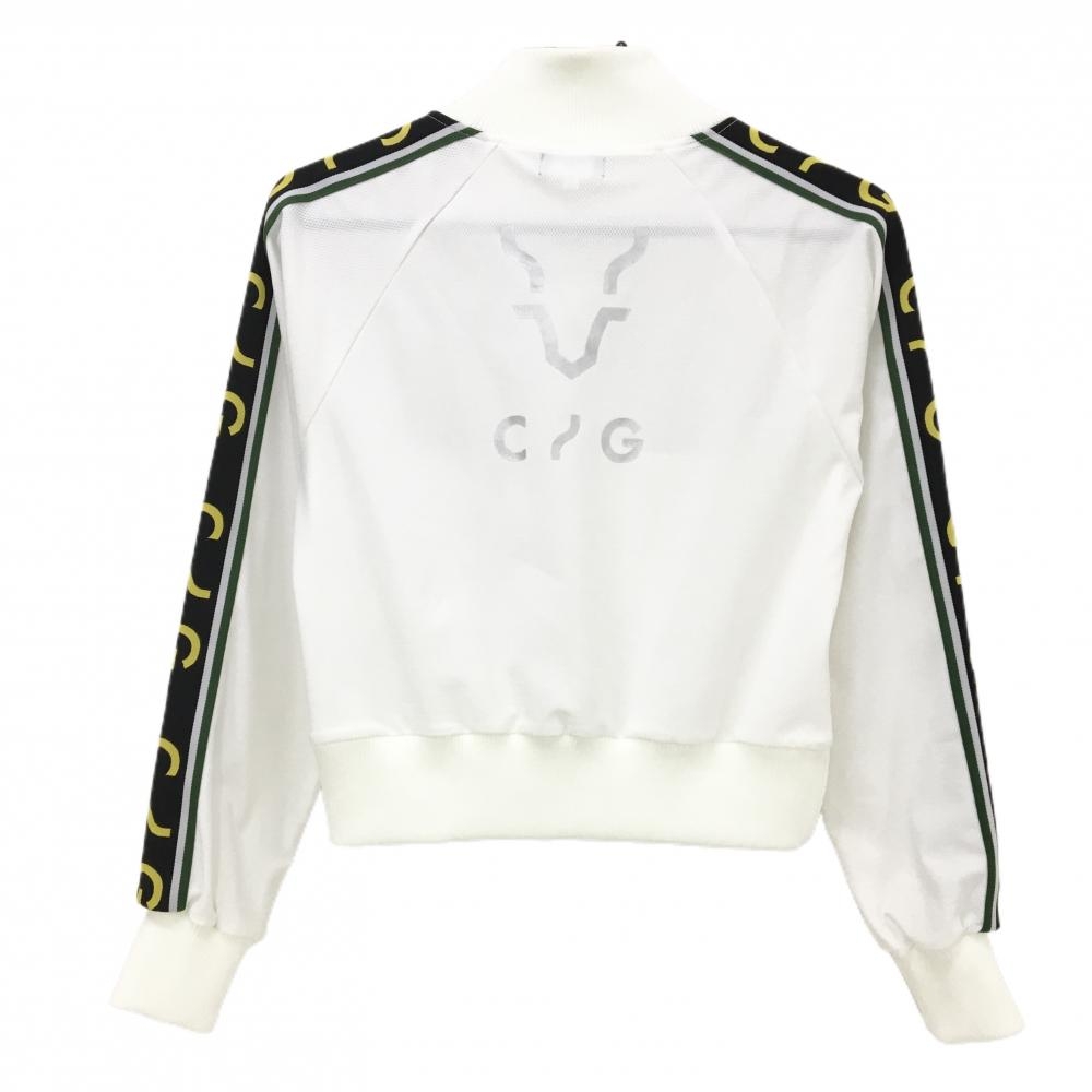 【新品】CPG ジャケットブルゾン 白×黒 メッシュ調 袖ロゴライン ショート丈 レディース 3 ゴルフウェア 2024年モデル CPG