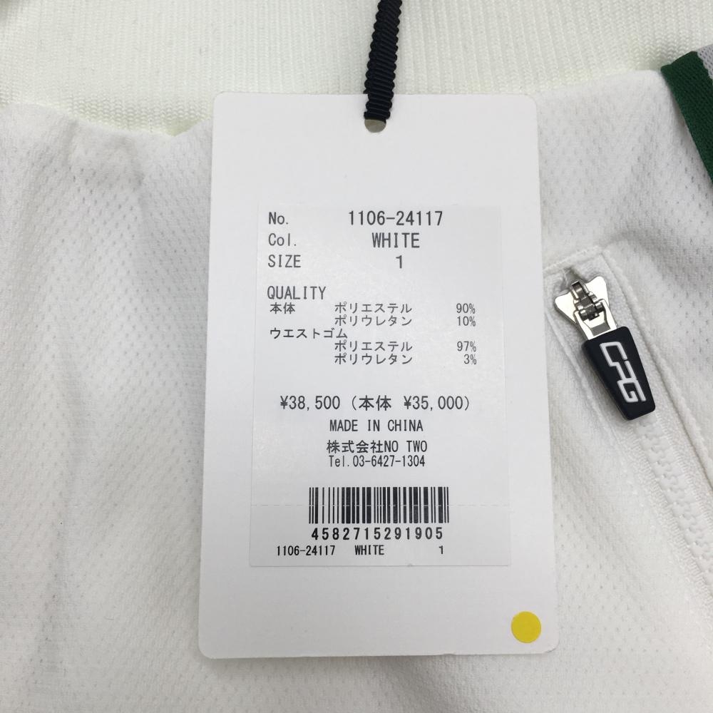 【新品】CPG スカート 白×黒 メッシュ調 ウエストゴム 調節紐 サイドロゴライン レディース 1(S) ゴルフウェア 2024年モデル CPG