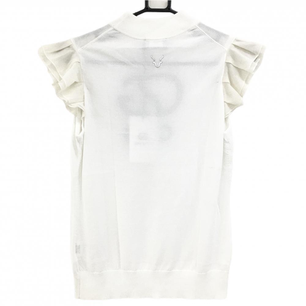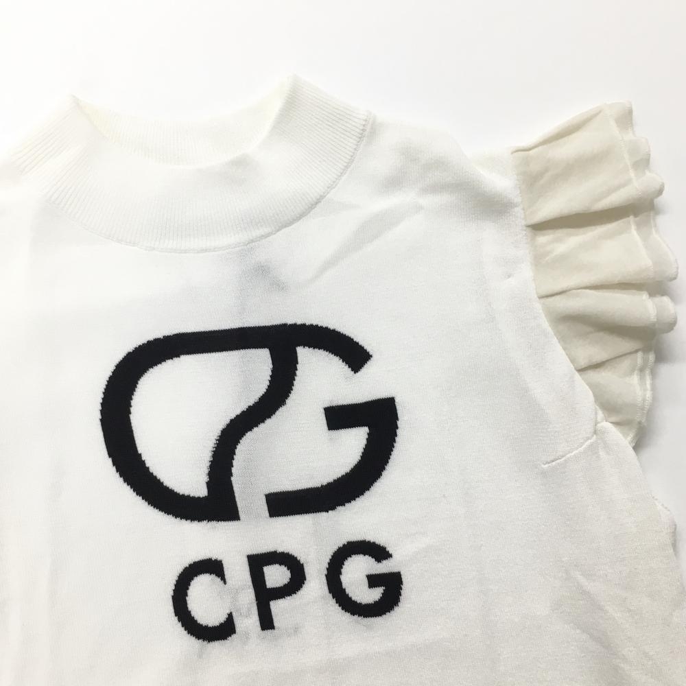 【新品】CPG 半袖ハイネックセーター 白 ロゴ黒 袖フリル ニット レディース 2(M) ゴルフウェア 2024年モデル CPG