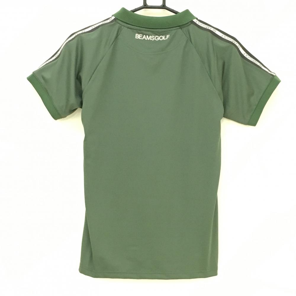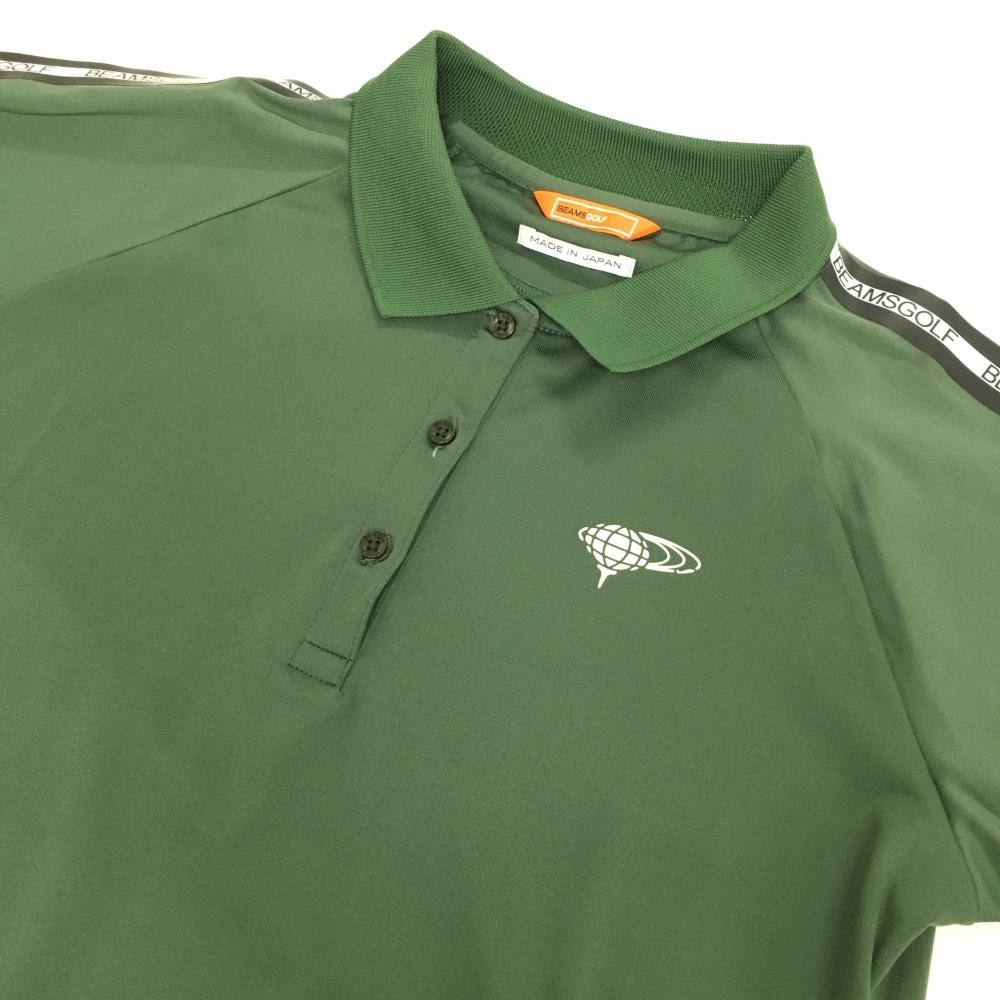 【超美品】ビームスゴルフ 半袖ポロシャツ ダークグリーン×黒 肩ロゴライン 胸元プリント レディース ゴルフウェア BEAMS GOLF