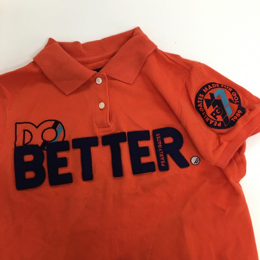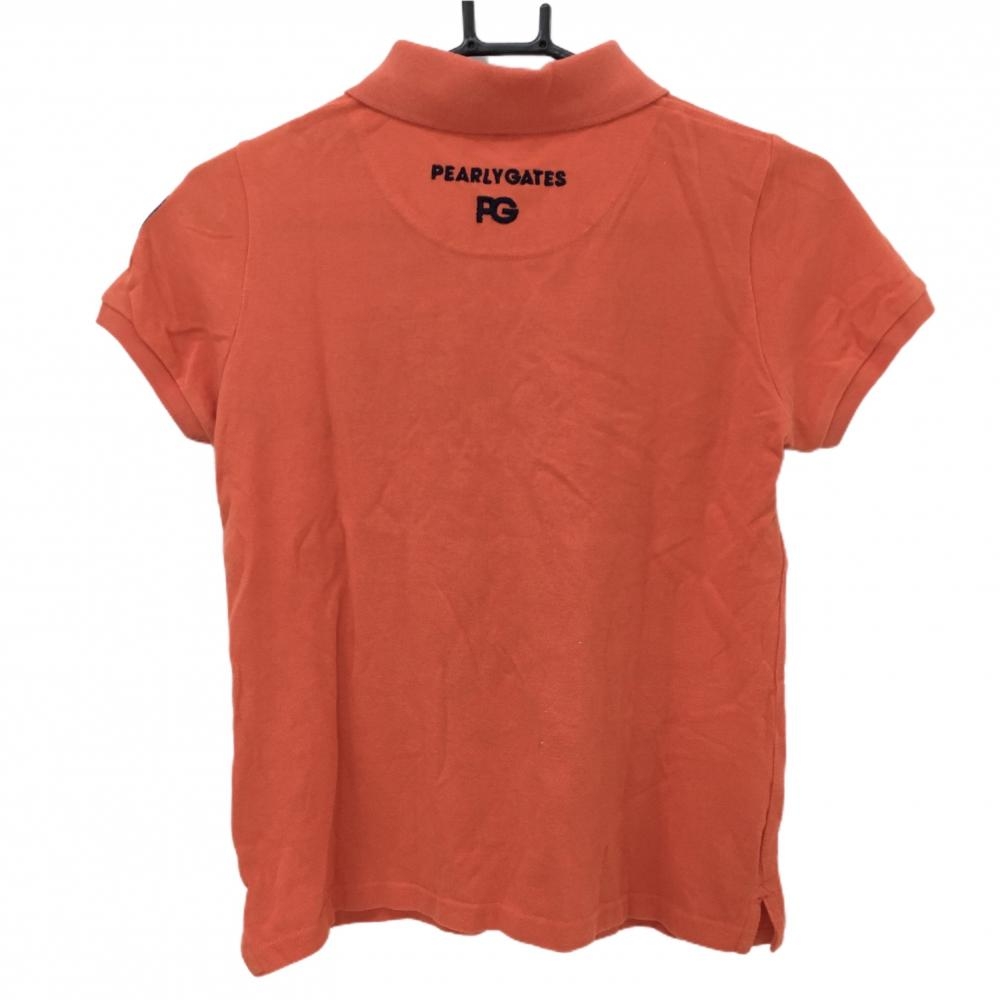 パーリーゲイツ 半袖ポロシャツ オレンジ×ネイビー 袖ロゴ刺しゅう レディース 0(S) ゴルフウェア PEARLY GATES