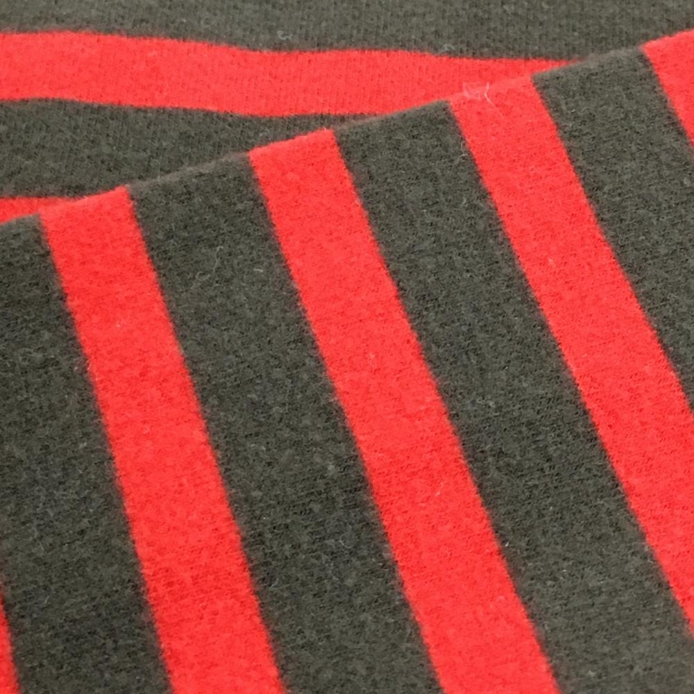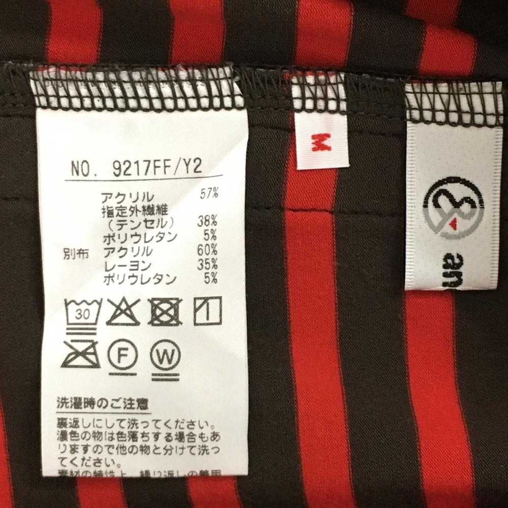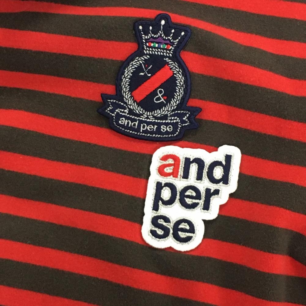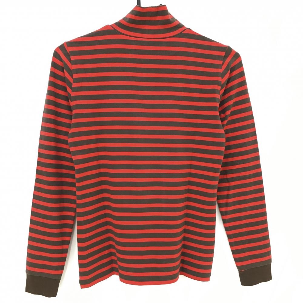 【美品】アンパスィ 長袖タートルネックシャツ ブラウン×レッド ボーダー 表微起毛 ロゴワッペン レディース M ゴルフウェア and per se