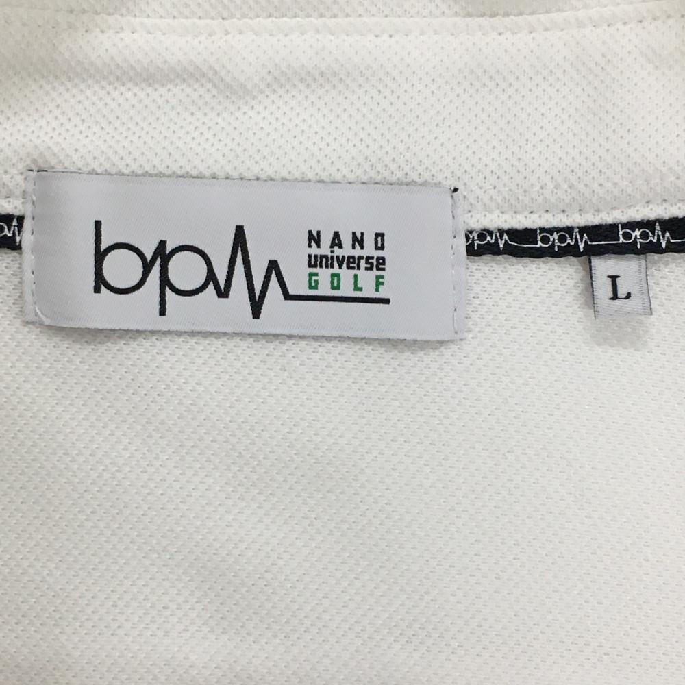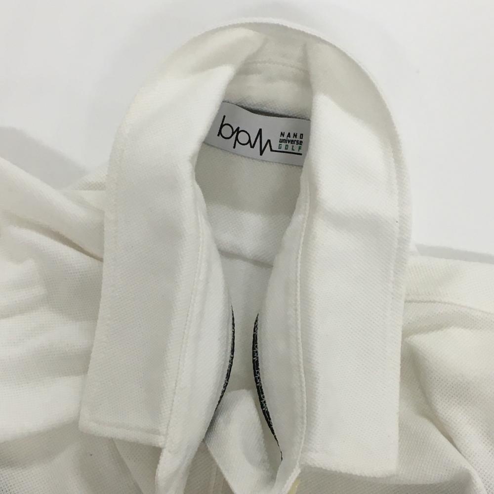 【美品】ナノユニバースゴルフ 半袖ポロシャツ 白×黒 bpm 胸ロゴ レディース L ゴルフウェア NANO universe GOLF