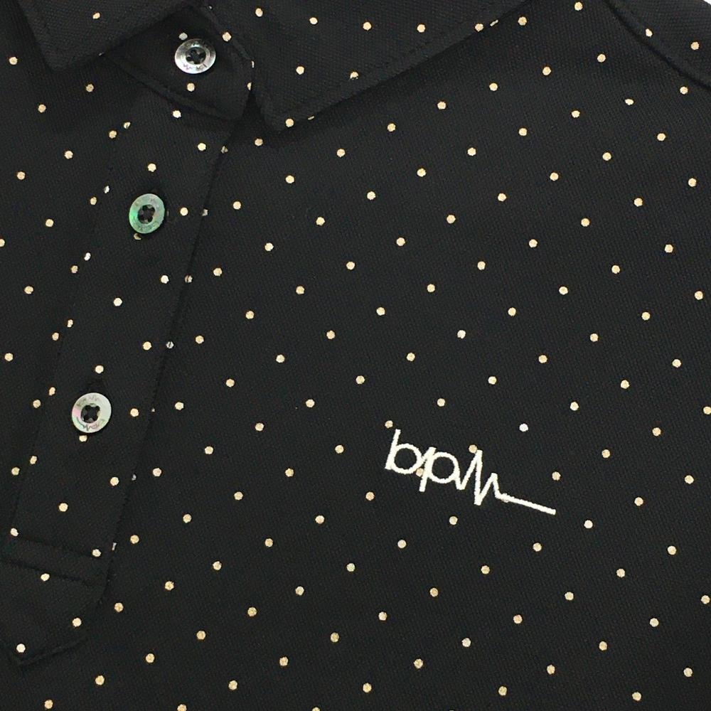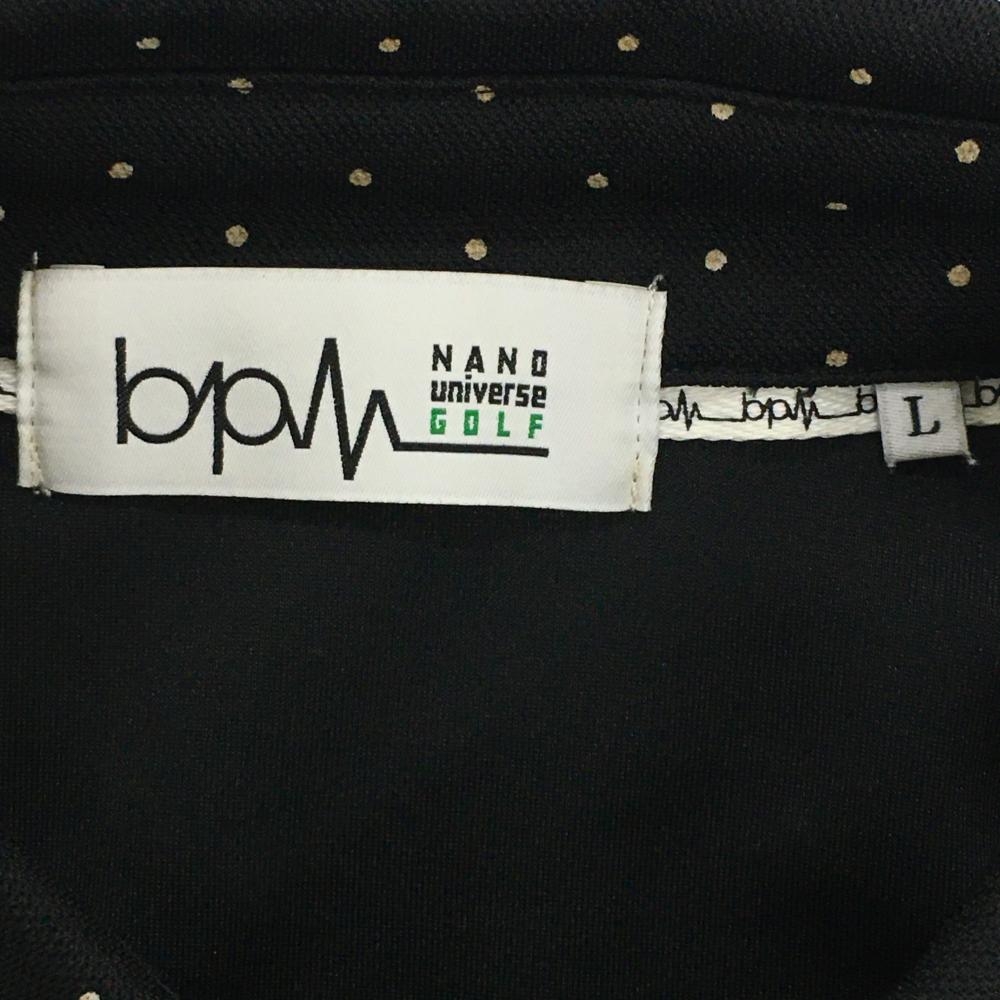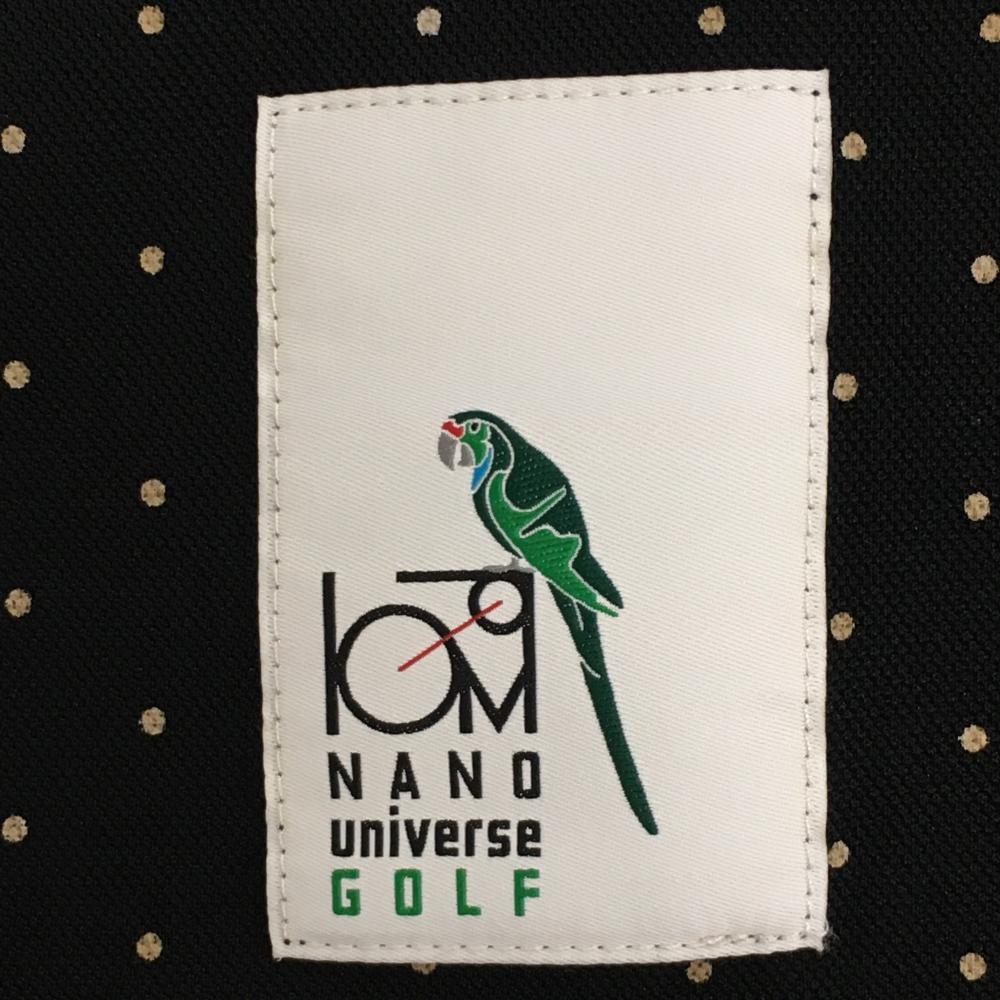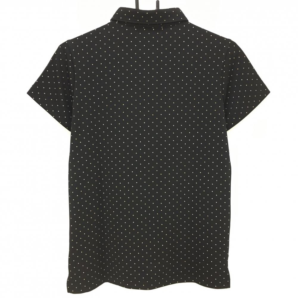 【超美品】ナノユニバースゴルフ 半袖ポロシャツ 黒×ライトブラウン ドット bpm 胸ロゴ レディース L ゴルフウェア NANO universe GOLF