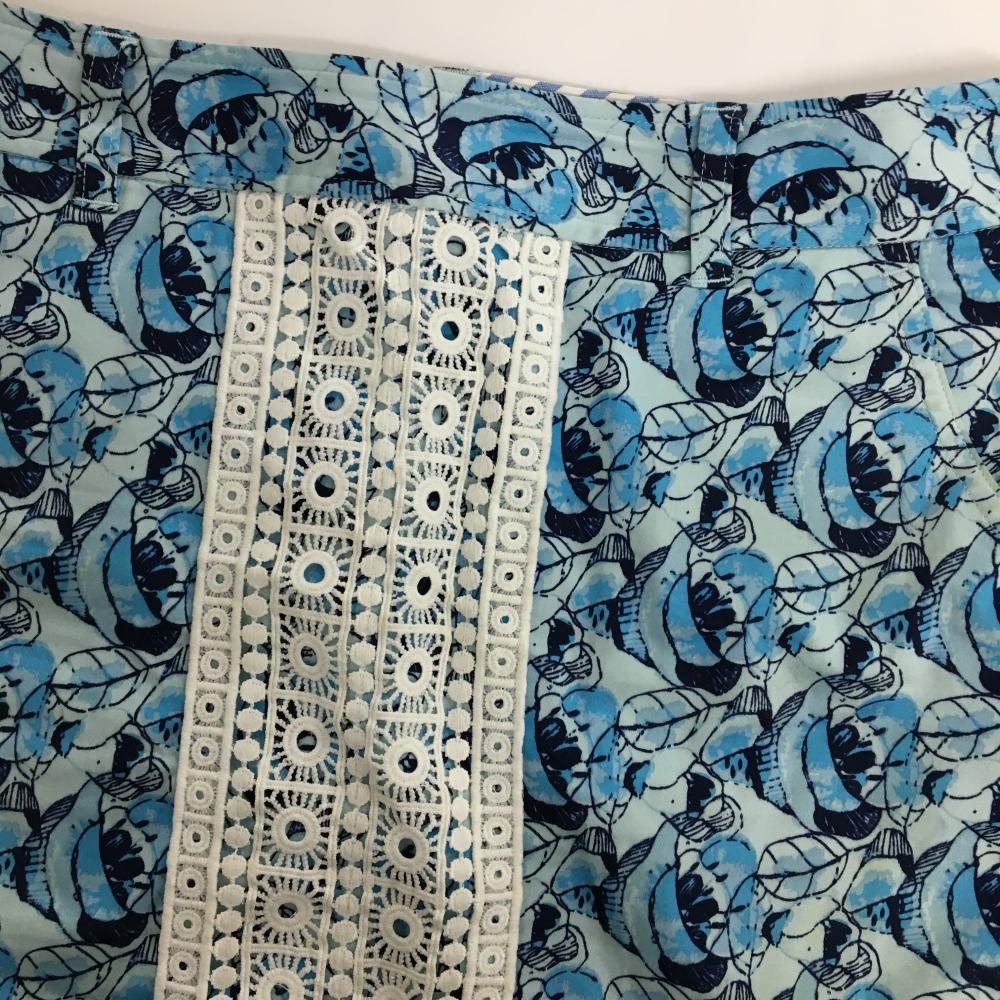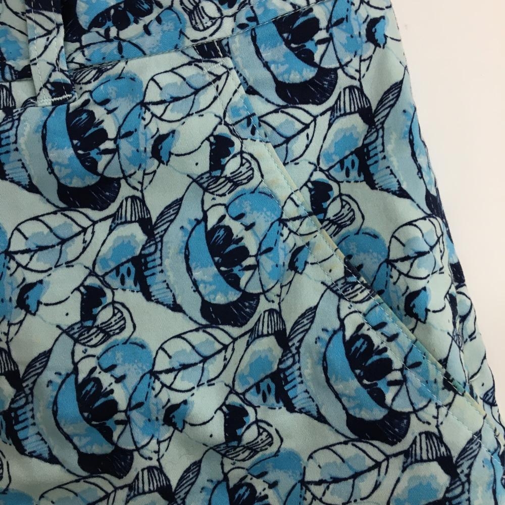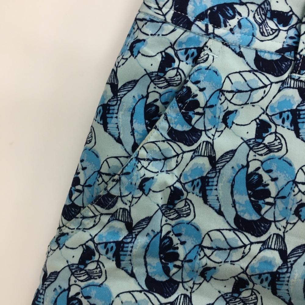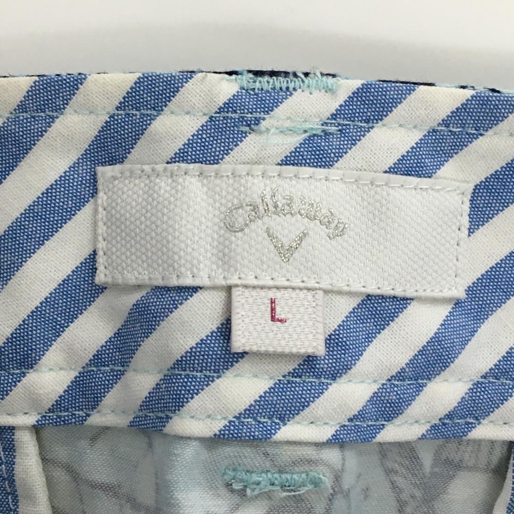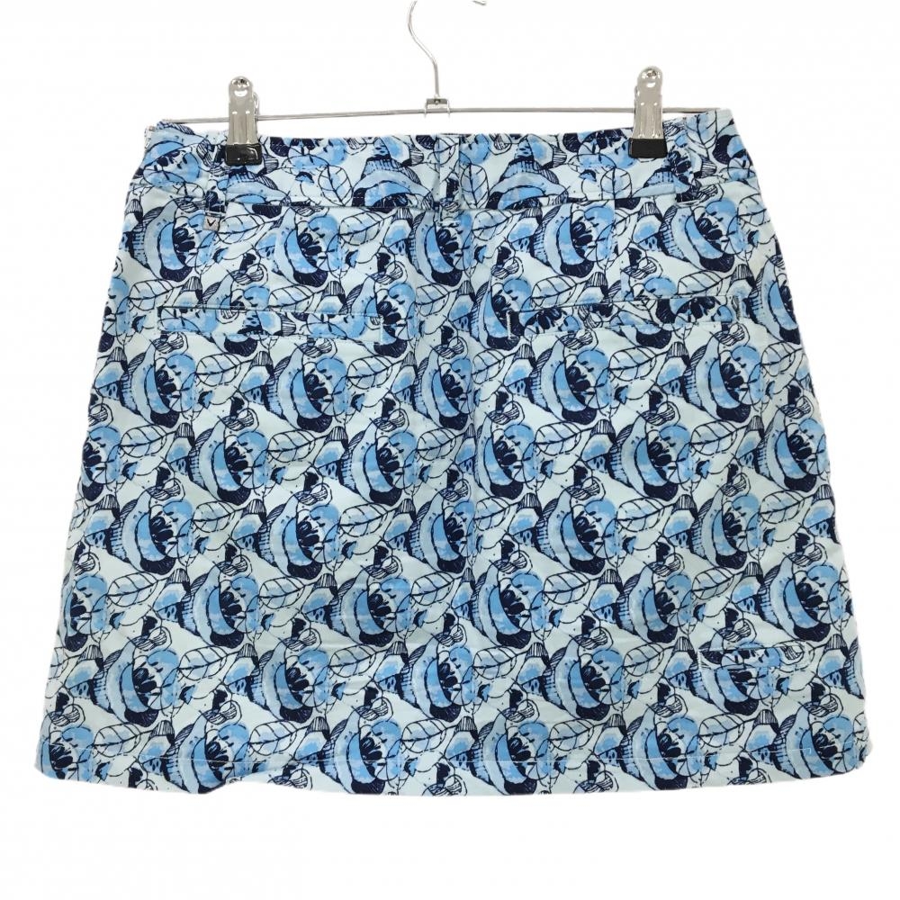 キャロウェイ スカート ライトブルー×ネイビー 総柄 前一部レース レディース L ゴルフウェア Callaway