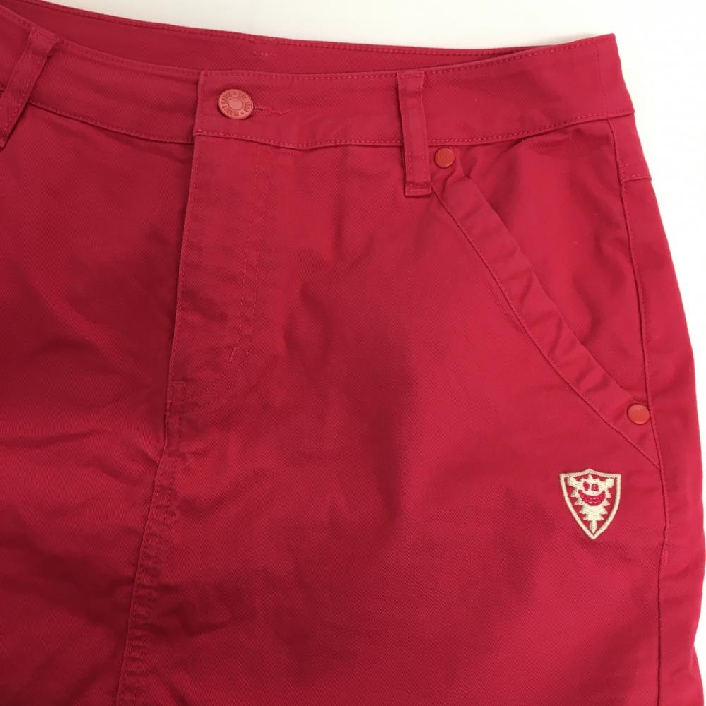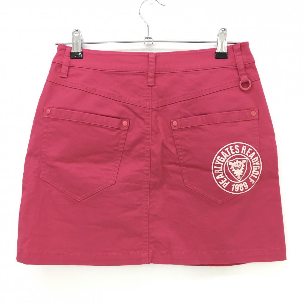 【美品】パーリーゲイツ スカート ピンクレッド 後ポケットロゴプリント レディース 1(M) ゴルフウェア PEARLY GATES