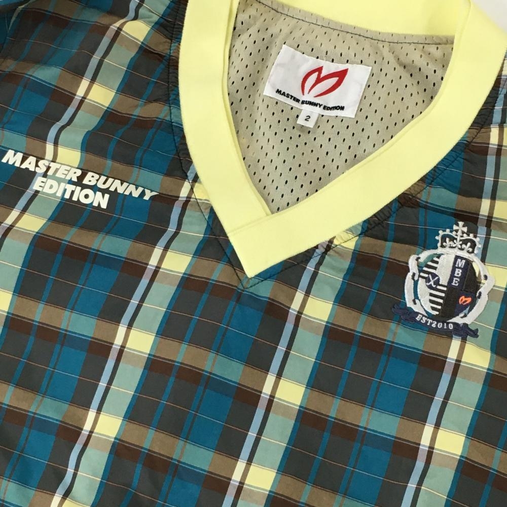 マスターバニー 2WAYスニード イエロー×ブラウン チェック Vネック 袖着脱可 レディース 2(L) ゴルフウェア MASTER BUNNY EDITION