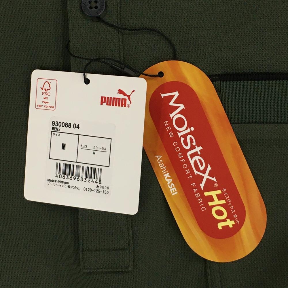 【新品】プーマ 長袖ポロシャツ カーキ×黒 胸ポケット ドライキープ 保温 メンズ M ゴルフウェア PUMA