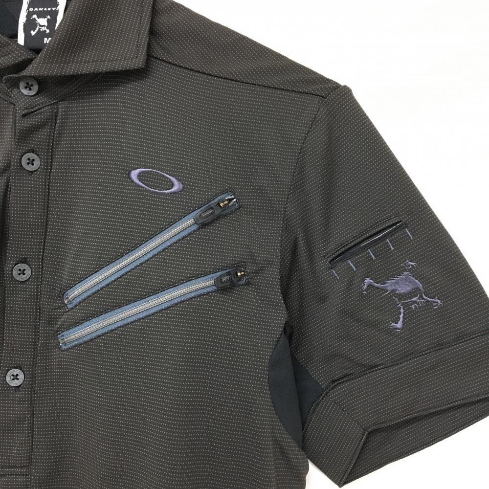【超美品】オークリー 半袖ポロシャツ ダークブラウン 地模様 ティー装着可 メンズ M ゴルフウェア Oakley