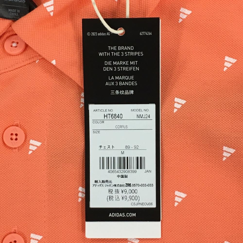 【新品】アディダス 半袖ポロシャツ オレンジ×白 ロゴ総柄 メンズ M ゴルフウェア adidas