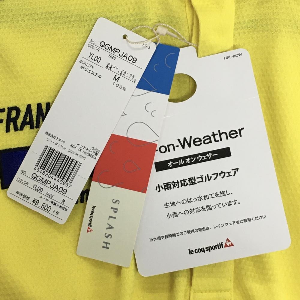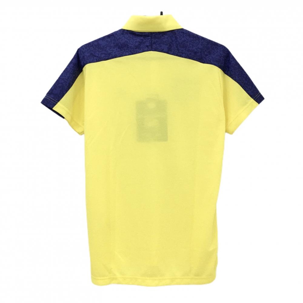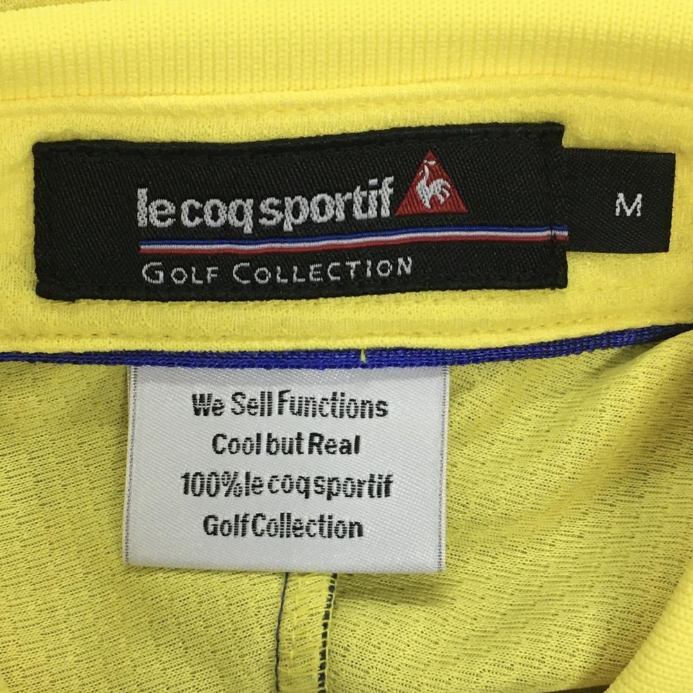【新品】ルコックゴルフ 半袖ポロシャツ イエロー×ネイビー 肩切替総柄 はっ水 メンズ M ゴルフウェア le coq sportif