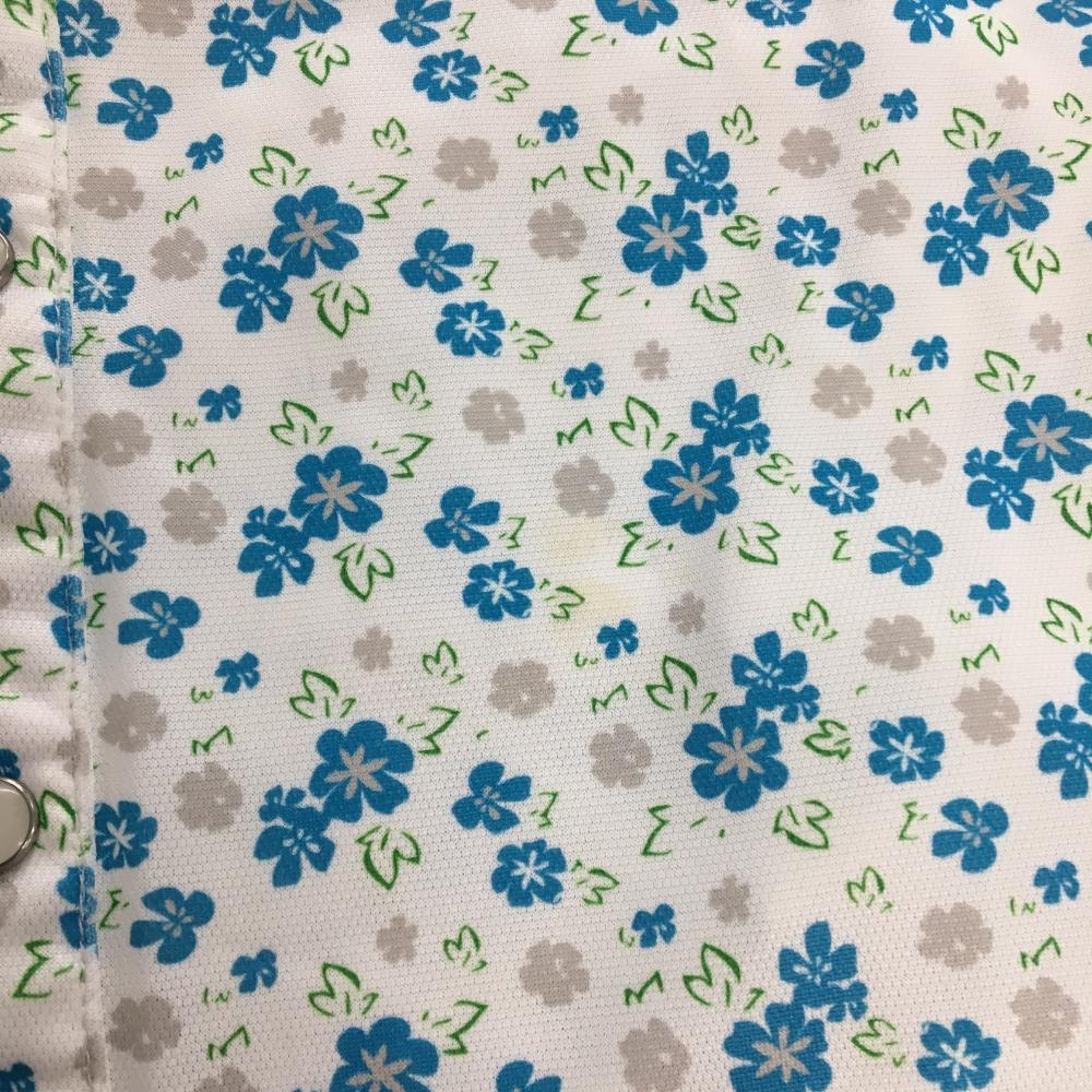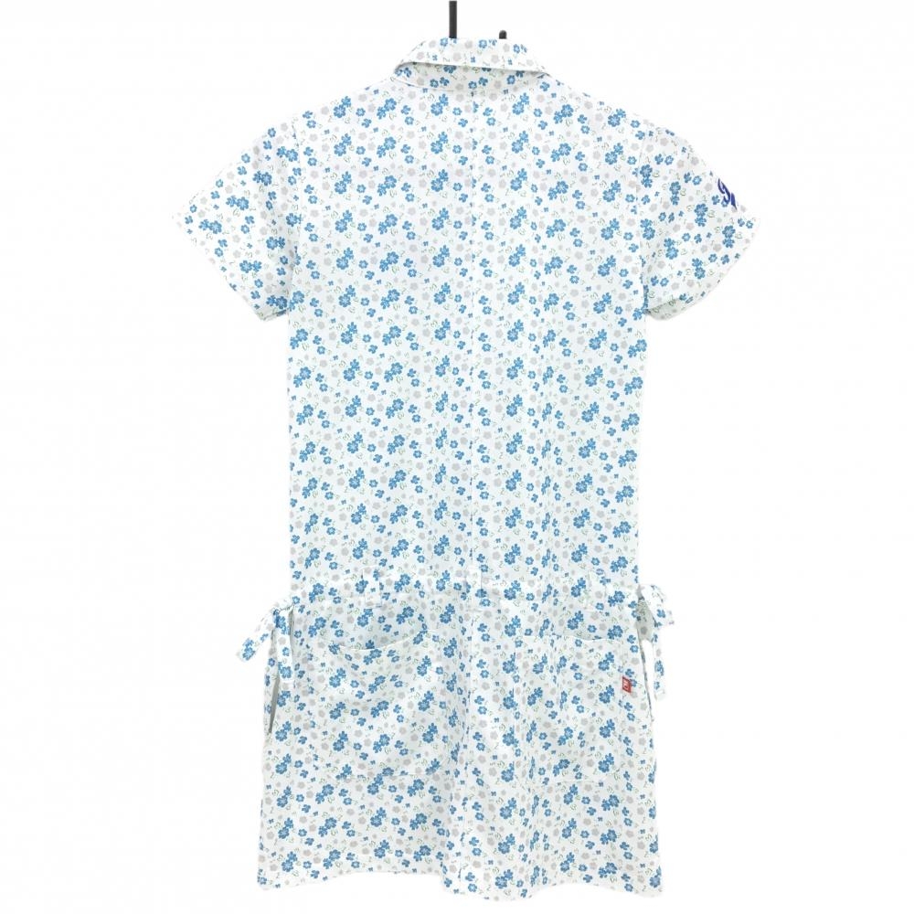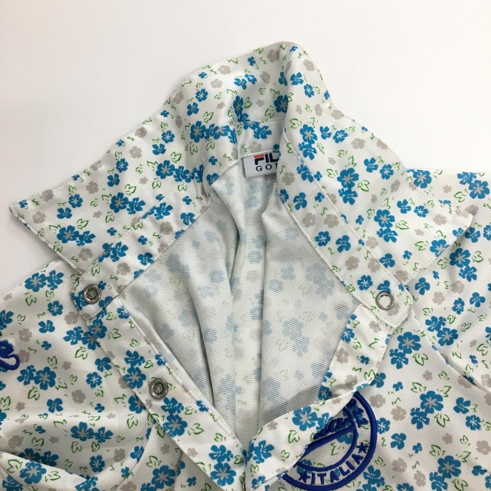 フィラゴルフ 半袖ポロワンピース 白×ブルー 花柄 ロゴ刺しゅう スナップボタン レディース M ゴルフウェア FILA GOLF