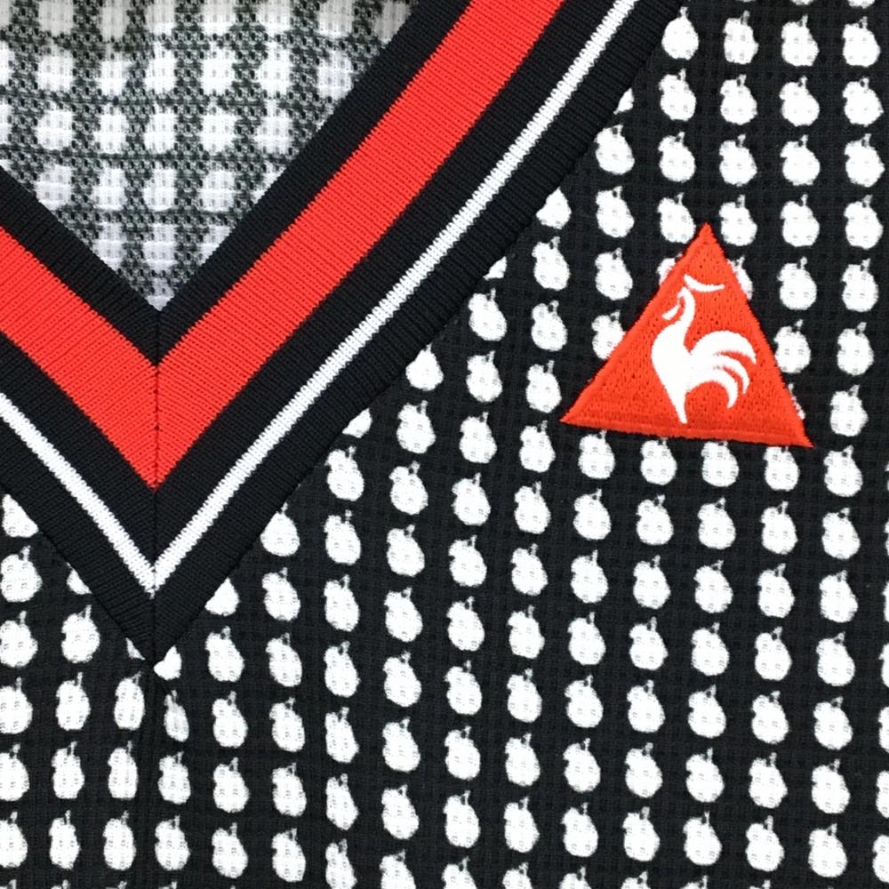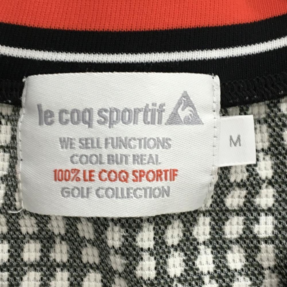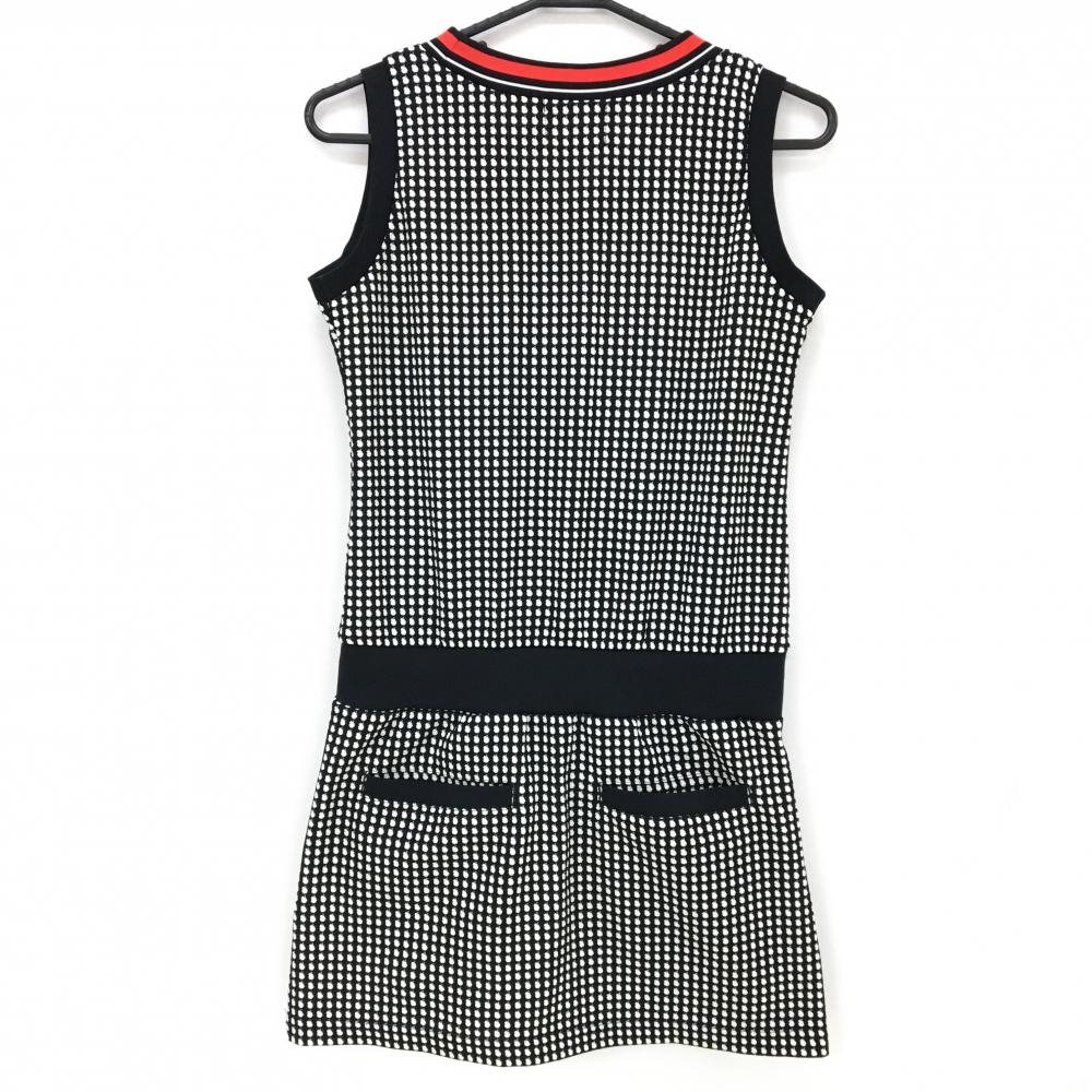 【超美品】ルコック ノースリーブワンピース 黒×白 総柄 ネックレッドライン Vネック レディース M ゴルフウェア le coq sportif