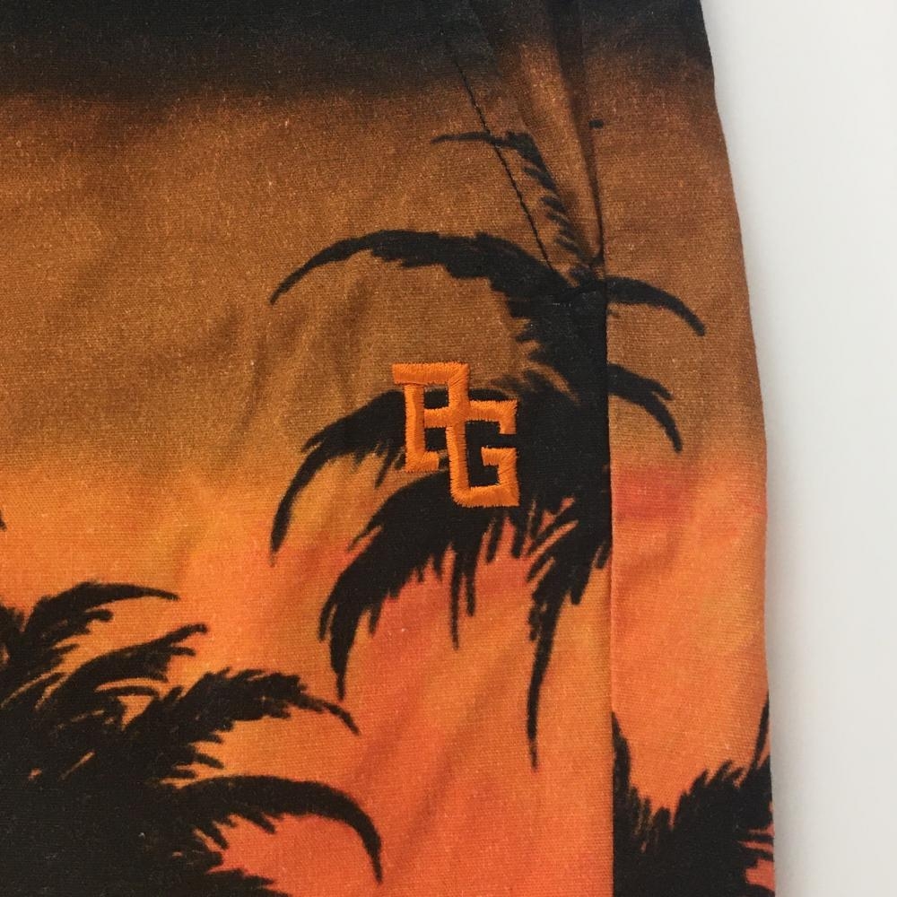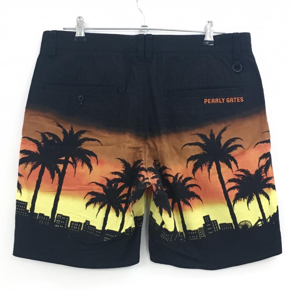 パーリーゲイツ ハーフパンツ ダークブラウン×オレンジ×イエロー ヤシの木柄 麻混 メンズ 5(L) ゴルフウェア PEARLY GATES