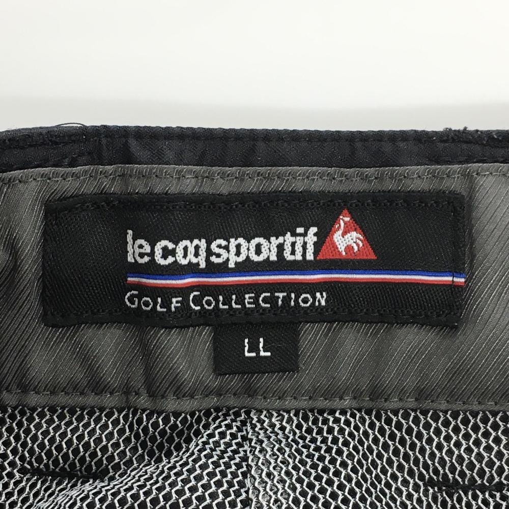 【美品】ルコックゴルフ パンツ 黒×白 地模様 裏地メッシュ ウエストゴム&調節紐 メンズ LL ゴルフウェア le coq sportif