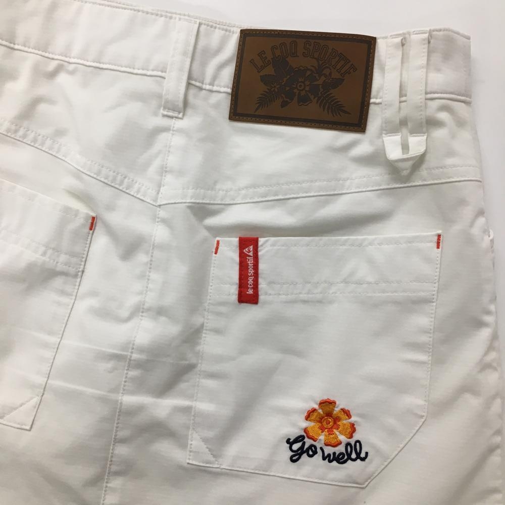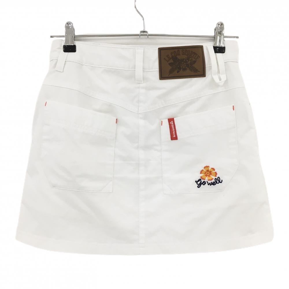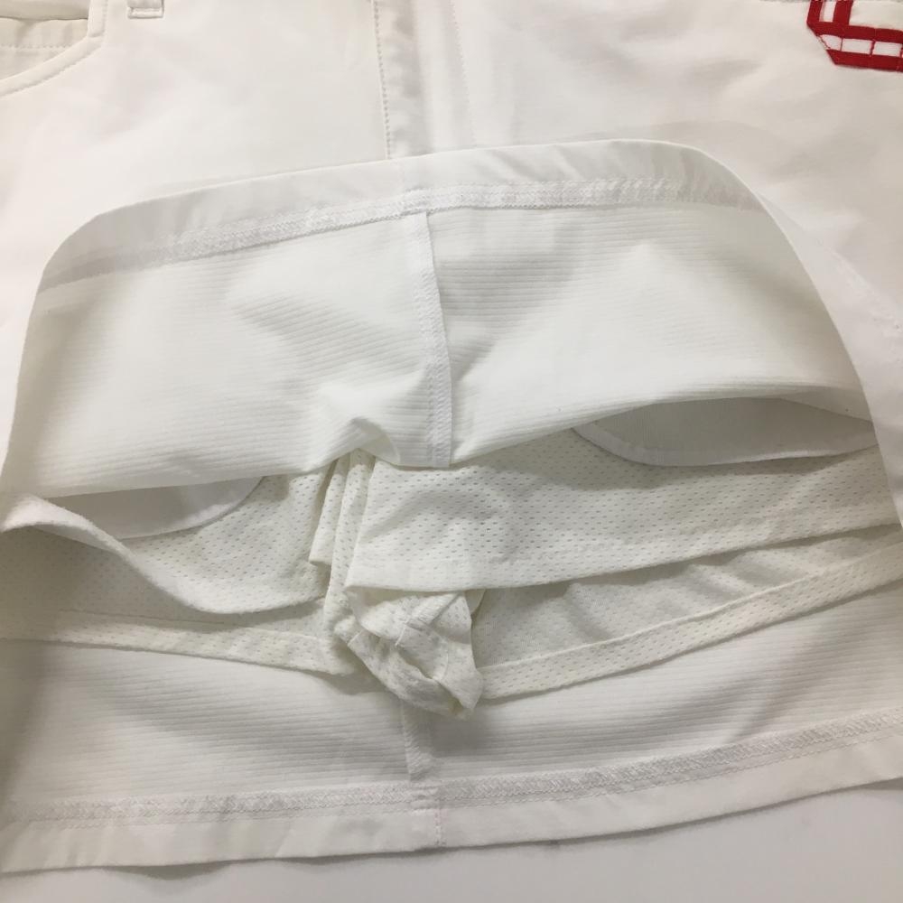 【美品】ルコックゴルフ スカート 白×レッド ロゴ刺しゅう ストレッチ 内側インナーパンツ レディース 7 ゴルフウェア le coq sportif