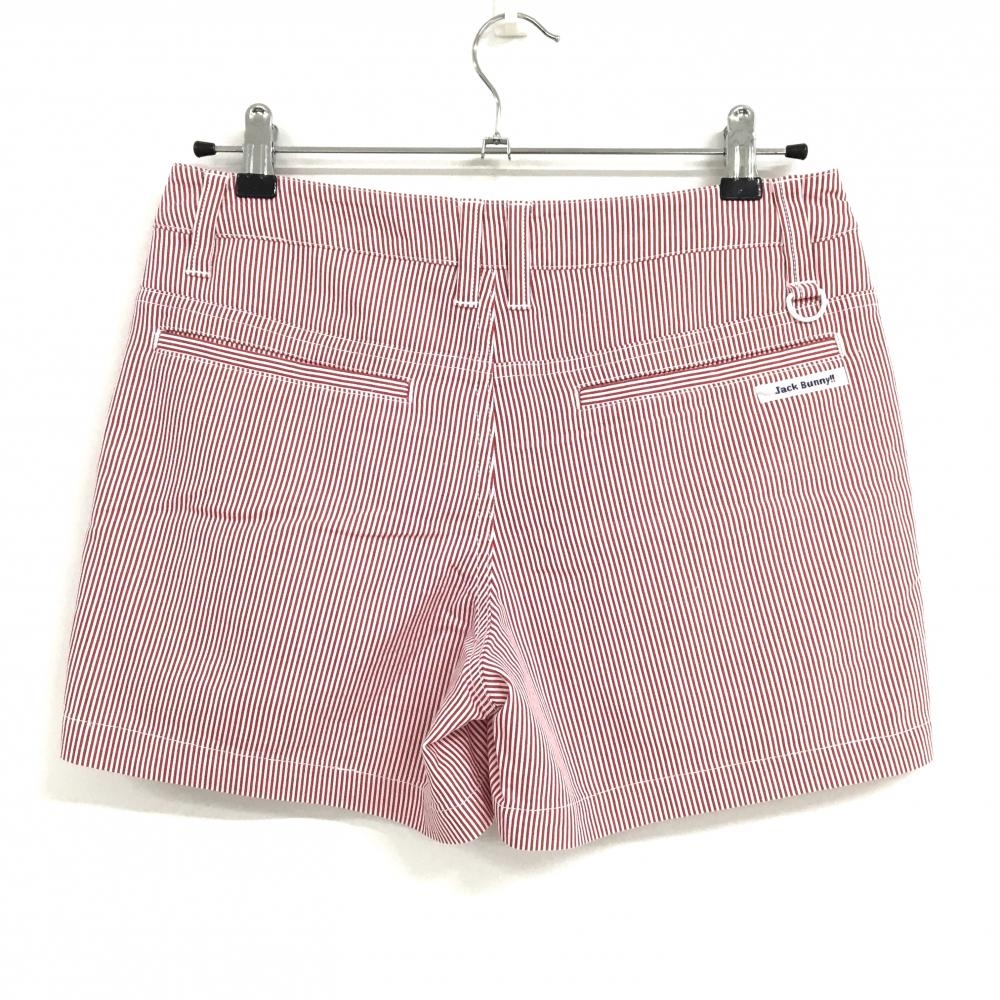 【超美品】ジャックバニー ショートパンツ レッド×白 ストライプ レディース 2(L) ゴルフウェア Jack Bunny