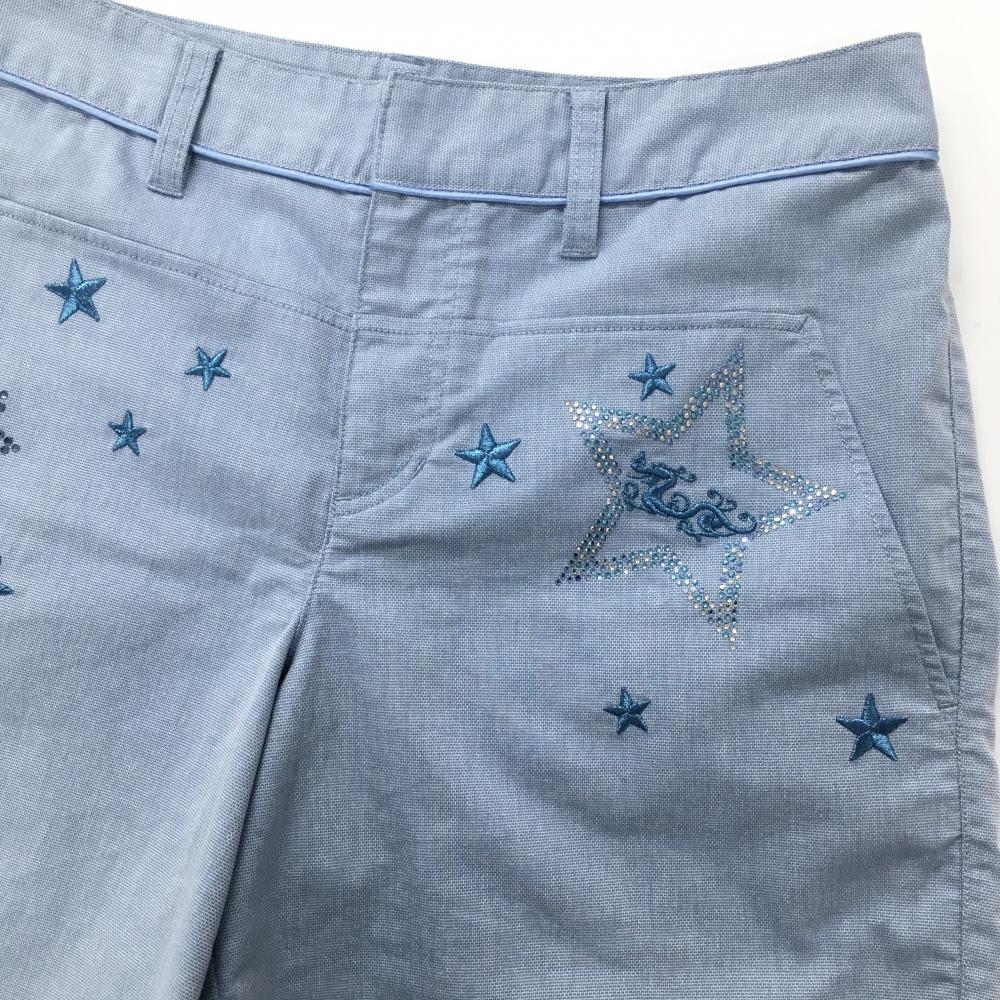 【超美品】ダンスウィズドラゴン ショートパンツ ライトブルー 星柄 ストレッチ レディース 3(L) ゴルフウェア Dance With Dragon