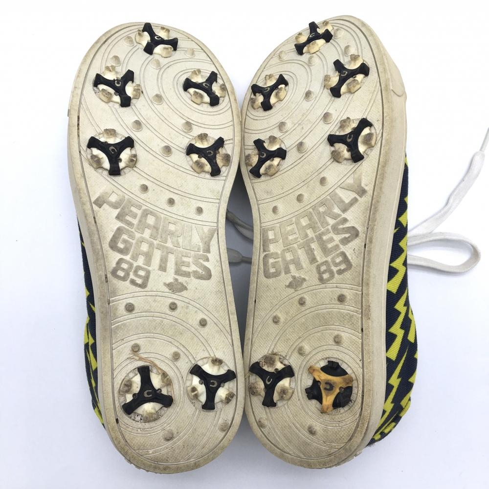 パーリーゲイツ ゴルフシューズ ネイビー系×イエロー 稲妻柄 雷柄 053-6192501 メンズ 25.5 ゴルフウェア PEARLY GATES