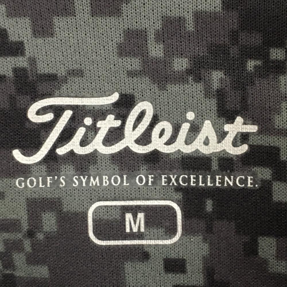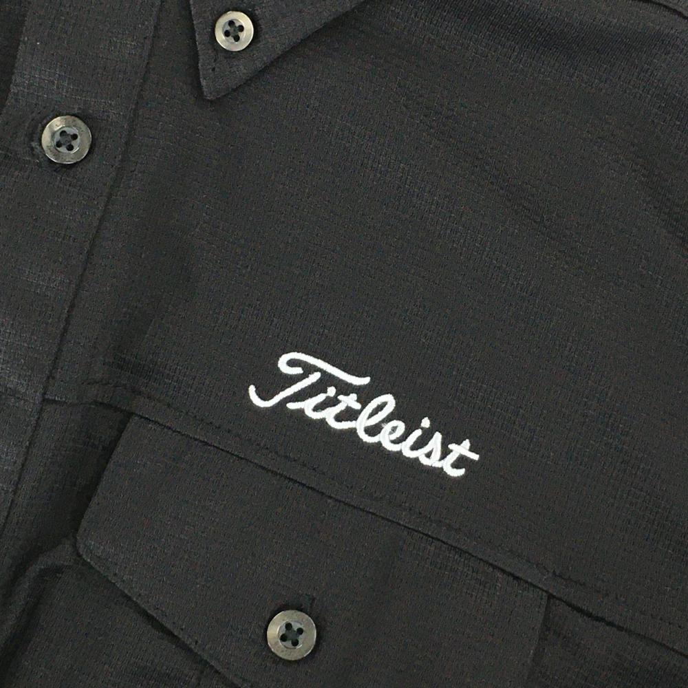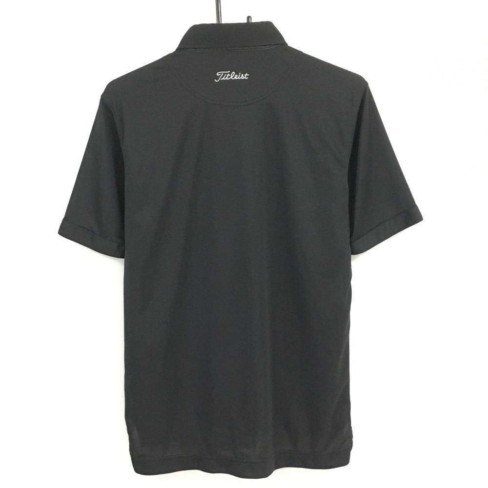 【美品】タイトリスト 半袖ポロシャツ 黒 襟裏前立て合成皮革 ボタンダウン メンズ M ゴルフウェア TITLEIST