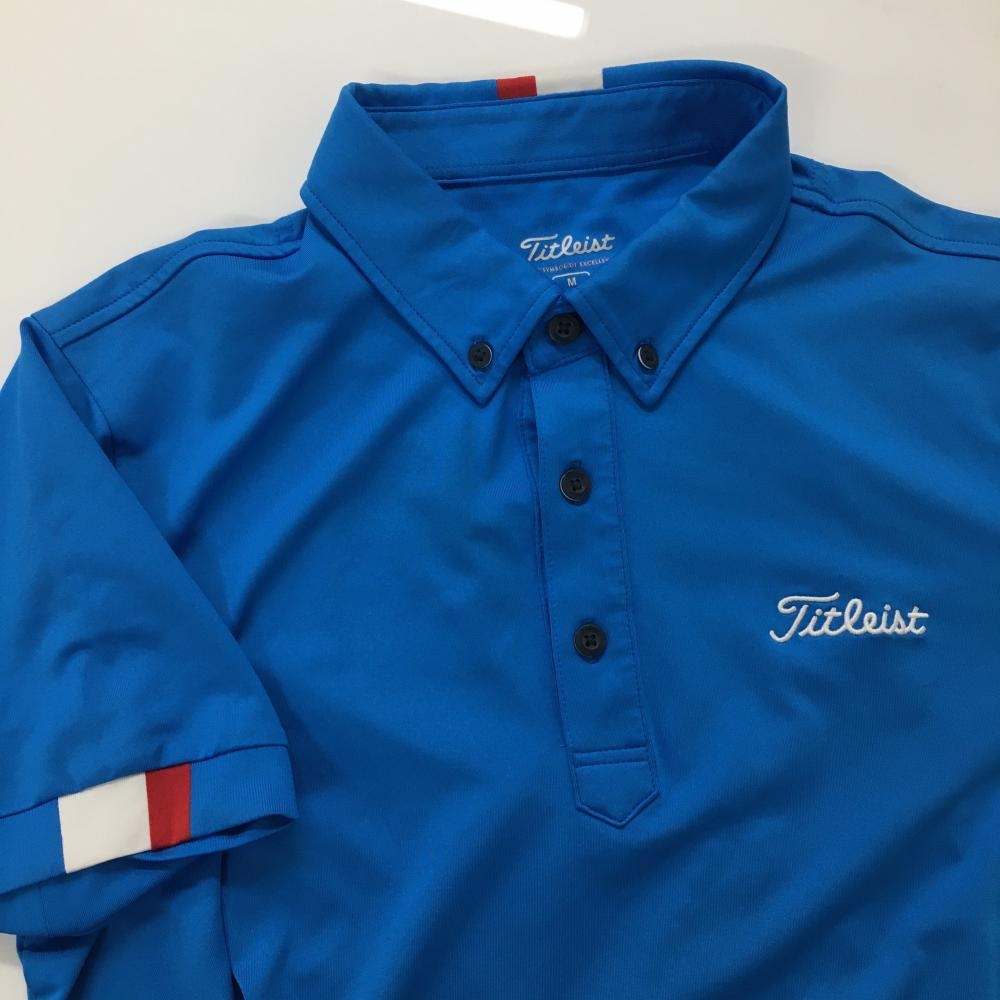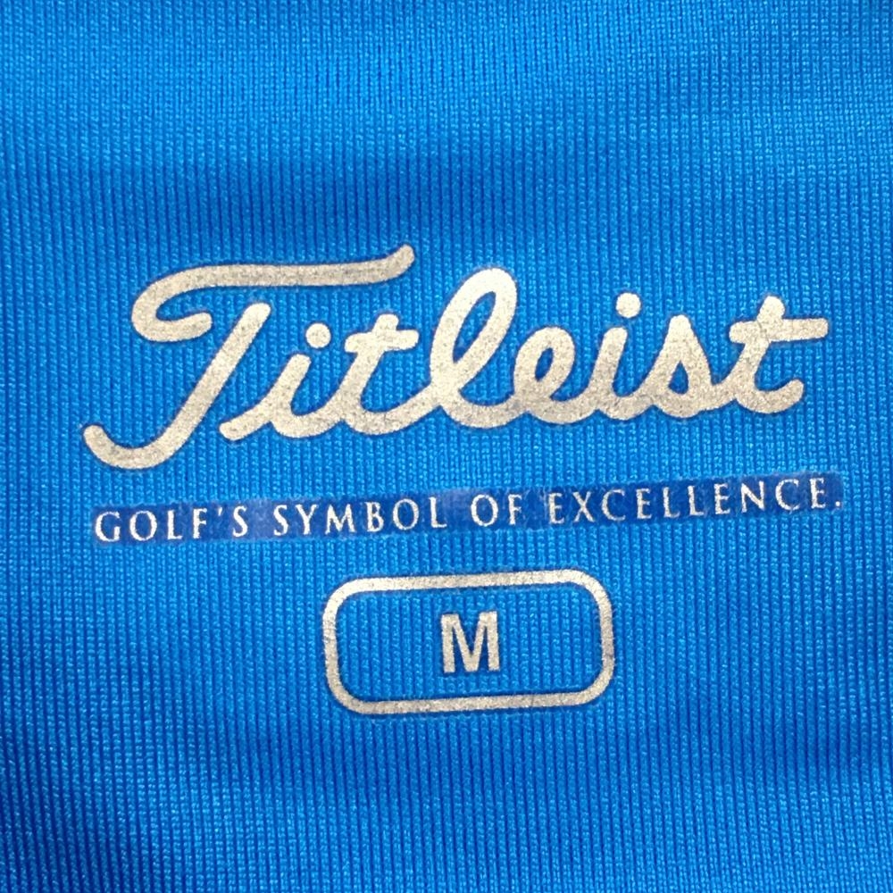 【美品】タイトリスト 半袖ポロシャツ ライトブルー ロゴ白 ボタンダウン メンズ M ゴルフウェア TITLEIST