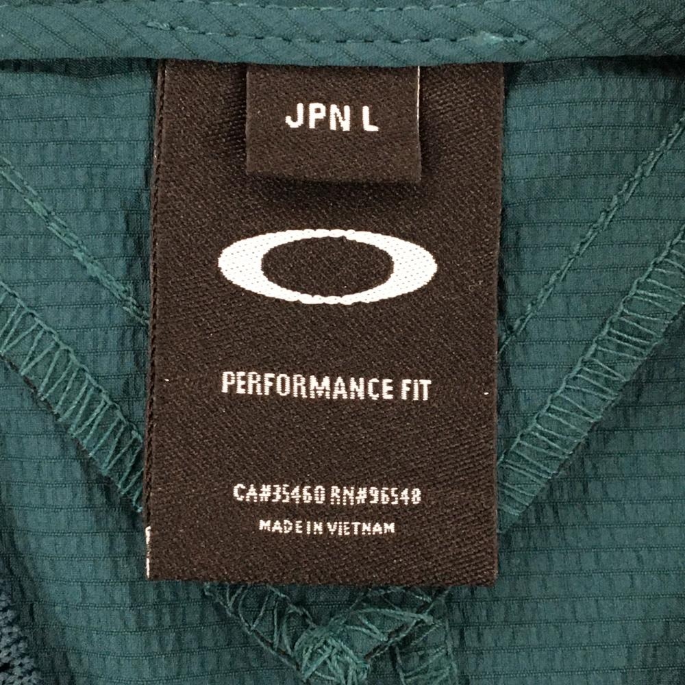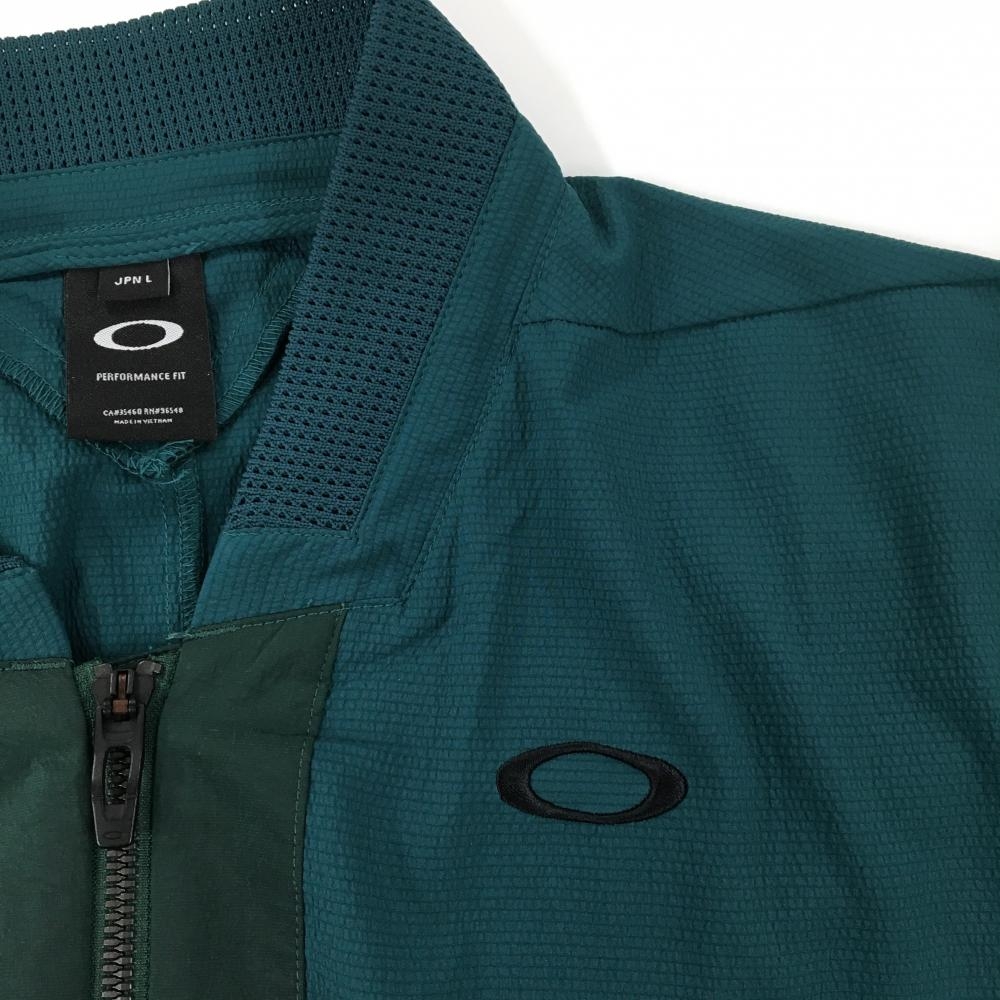 【超美品】オークリー ジャケット グリーン 薄手 ロゴ黒 ストレッチ メンズ L ゴルフウェア Oakley